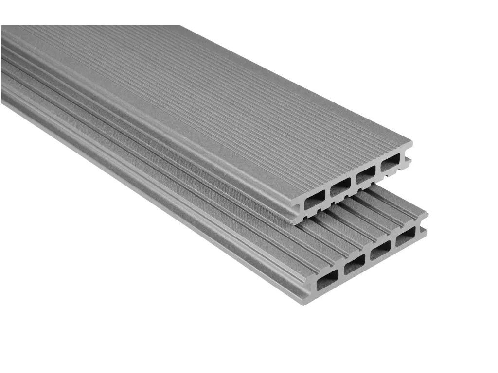 Diese 26 mm starke Terrassendielen werden aus WPC hergestellt.