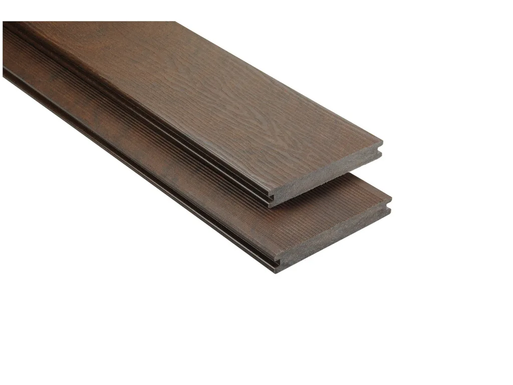 Diese 20 mm starke Terrassendielen werden aus WPC hergestellt.