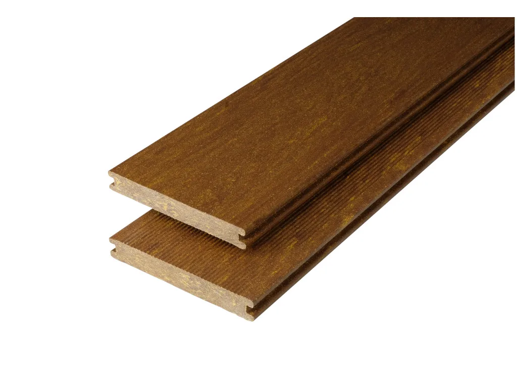 Diese 20 mm starke Terrassendielen werden aus WPC hergestellt.