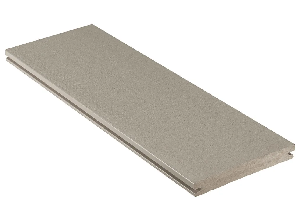 Diese 21 mm starke Terrassendielen werden aus WPC hergestellt.