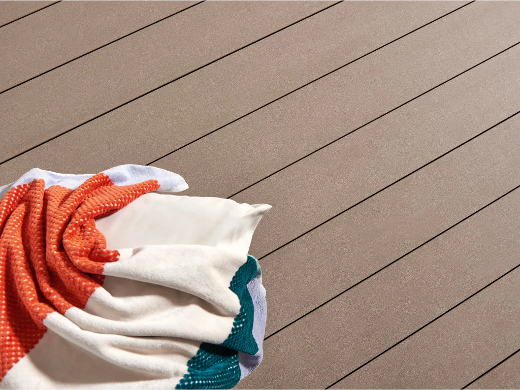 Diese 21 mm starke Terrassendielen werden aus WPC hergestellt.
