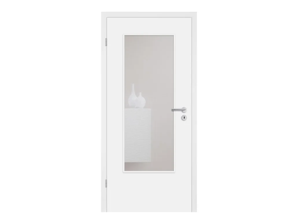 Diese Tür besitzt einen Lichtausschnitt und wird ohne Glaseinsatz geliefert. Die genauen Maße des benötigen Glasausschnitts kannst du den Technischen Daten entnehmen.