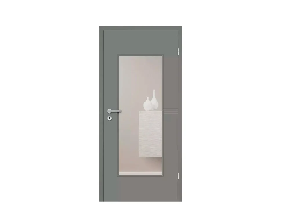 Diese Tür besitzt einen Lichtausschnitt und wird ohneGlaseinsatz geliefert. Die genauen Maße des benötigen Glasausschnitts kannst du den Technischen Daten entnehmen.