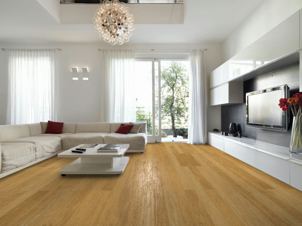 Dieser Boden aus Bambus besitzt viele farbliche Abstufungen und Variationen. Daher wirkt er besonders lebendig und natürlich. Die nachhaltigen Bodenbeläge aus Bambus sind wasserabweisend und kommen aufgrund ihrer Härte sehr gut mit Feuchtigkeit klar.