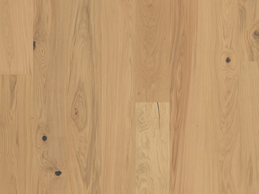 Von weicheren Holzschichten befreit, bildet das harte, stabile Kernholz der Diele eine fühlbar strukturierte, dreidimensionale und lebendig wirkende Oberfläche. Mithilfe von Naturöl als Oberflächenbehandlung behält das Holz seinen einzigartigen natürlichen Look bei und bleibt atmungsaktiv.