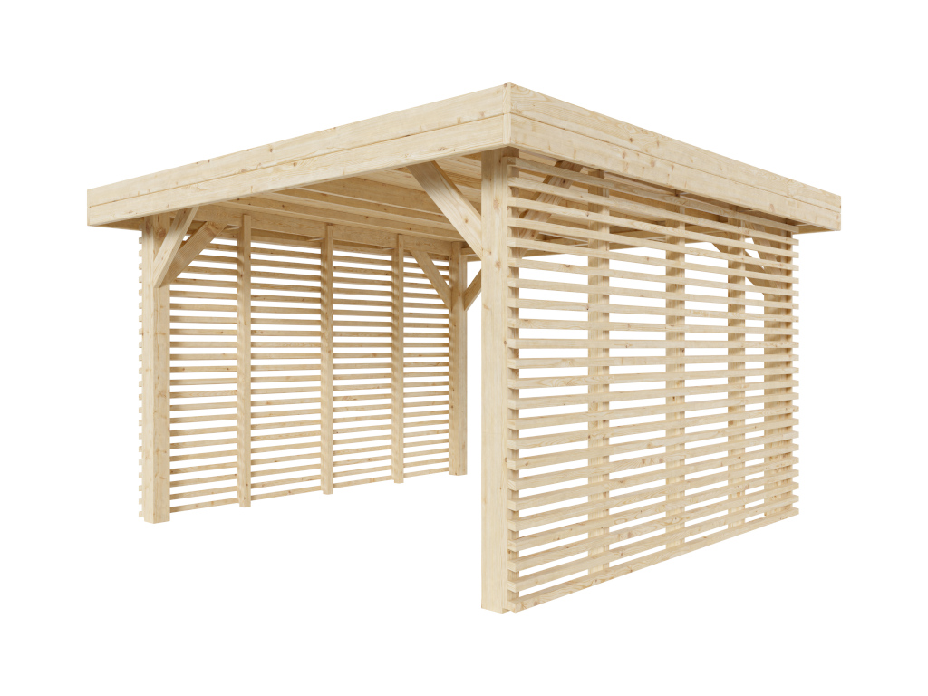 B x T x H: 350 x 350 x 226 cm, Sockelmaß B x T: 300 x 300 cm, inkl. 2 Lamellenwände, Pfostenstärke 12 cm