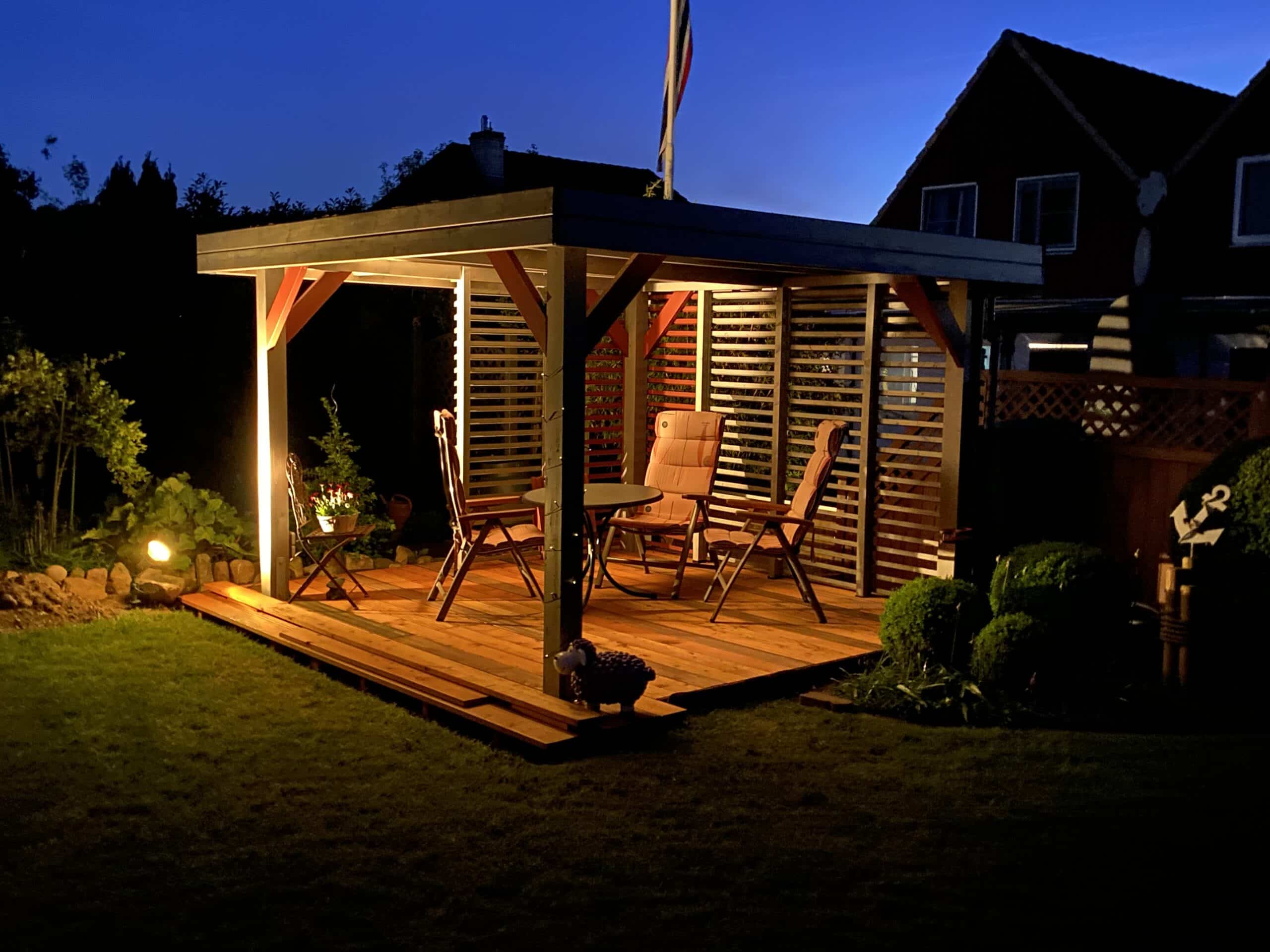 Das naturbelassene Holz sorgt für ein natürliches und zeitloses Aussehen. Außerdem ermöglicht dir das unbehandelte Holz, das Äußere des Pavillons ganz nach deinen eigenen Wünschen zu gestalten.