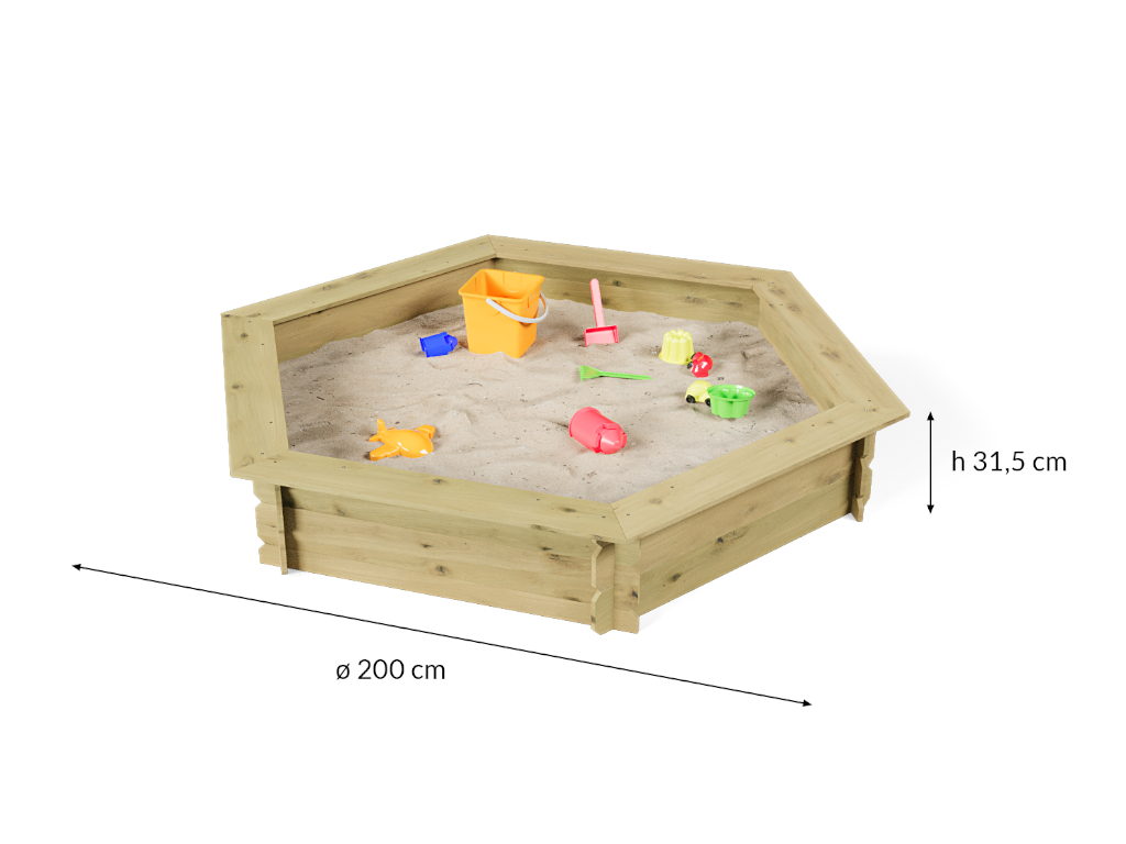 6-Eck Sandkasten mit 200 cm Durchmesser, Steck-Bausatz