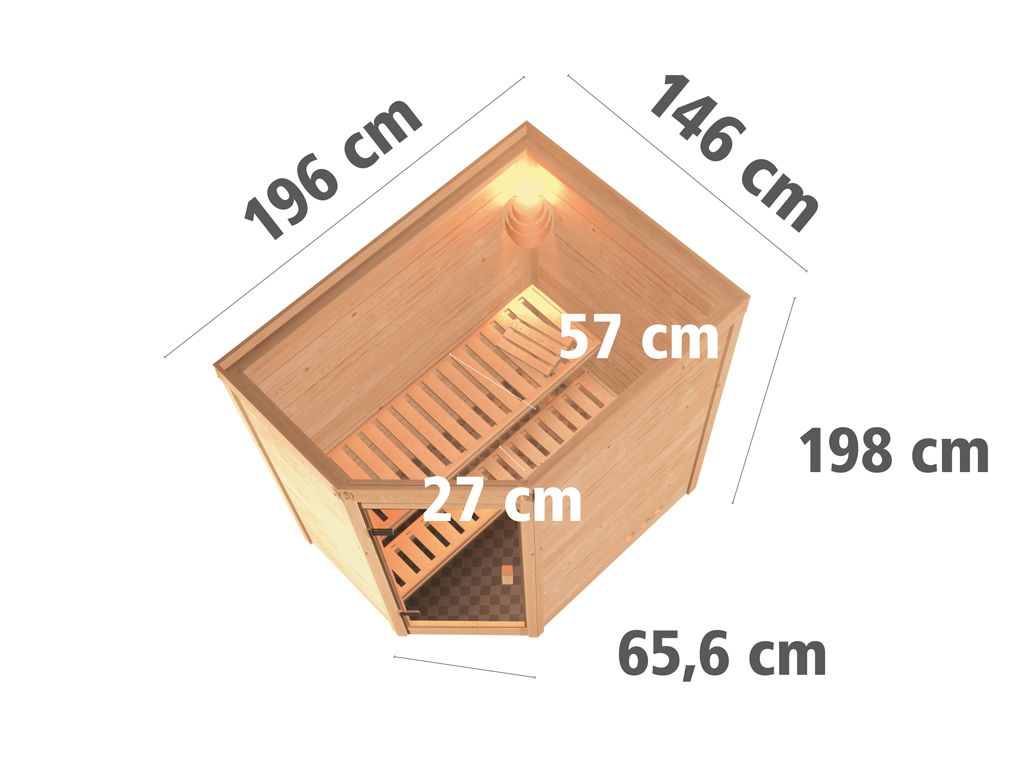 B x T x H: 196 x 146 x 198 cm, 2 Liegen, inkl. 4,5 kW Saunaofen, ext. Steuerung