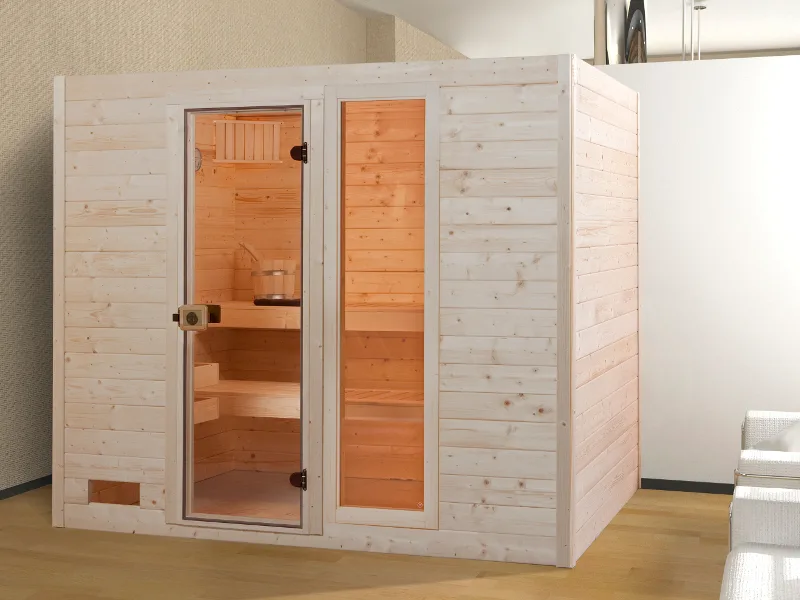 WEKA Sauna Valida 4 mit Glastür und Fensterelement.