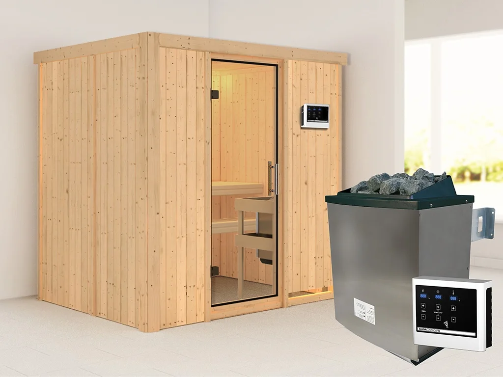 Sauna Systemsauna Bodin, inkl. 9 kW Ofen mit externer Steuerung