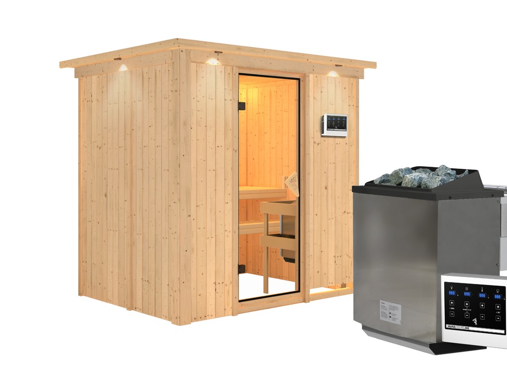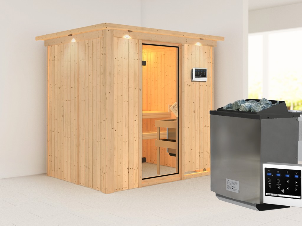 Innensauna Systemsauna Lara 2 mit 9kW Bio-Kombiofen und ext. Steuerung Innensauna Systemsauna Lara 2 mit 9kW...