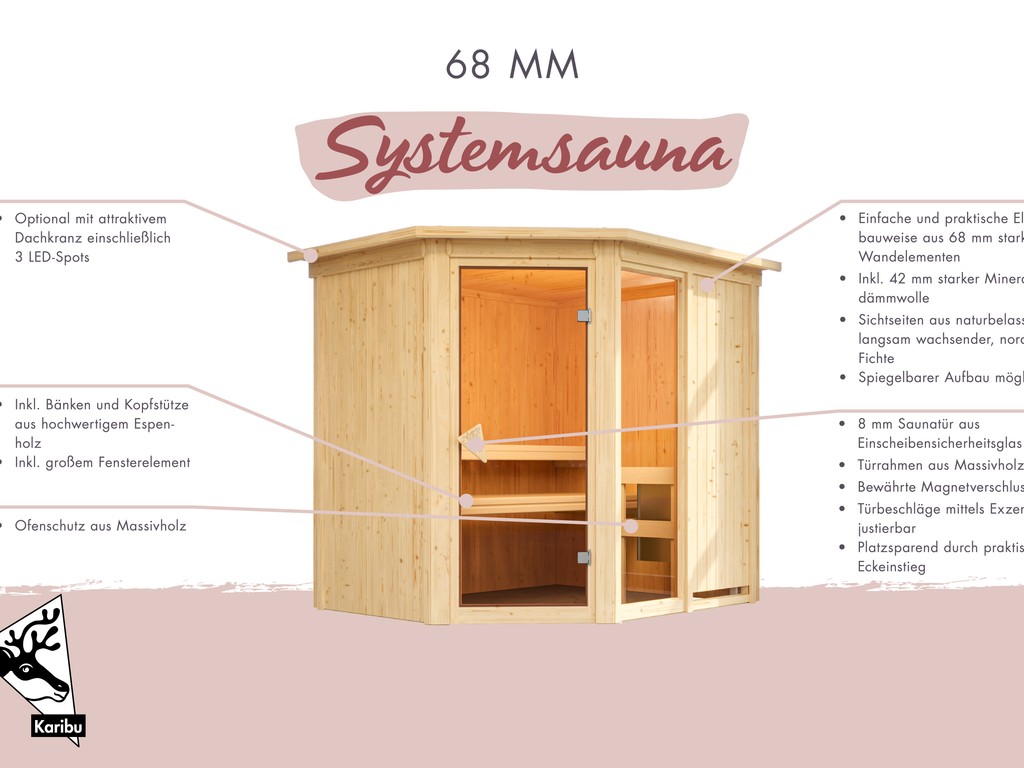 Karibu Innensauna Fiona in Systembauweise für 2-3 Personen