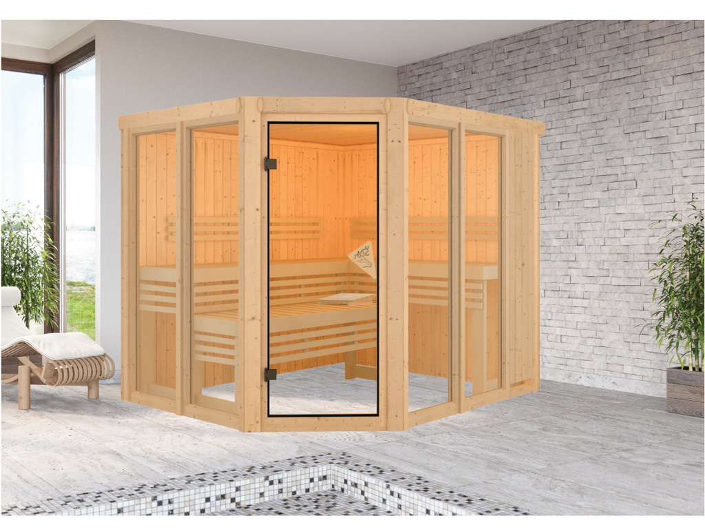 Karibu Innensauna Nuri Sparset in Systembauweise für 2-4 Personen inklusive 9 kW Saunaofen mit integrierter Steuerung