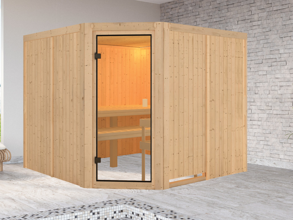 Elementsauna 68 mm Celine 7 SPARSET inkl. 9 kW Saunaofen und ext. Steuerung