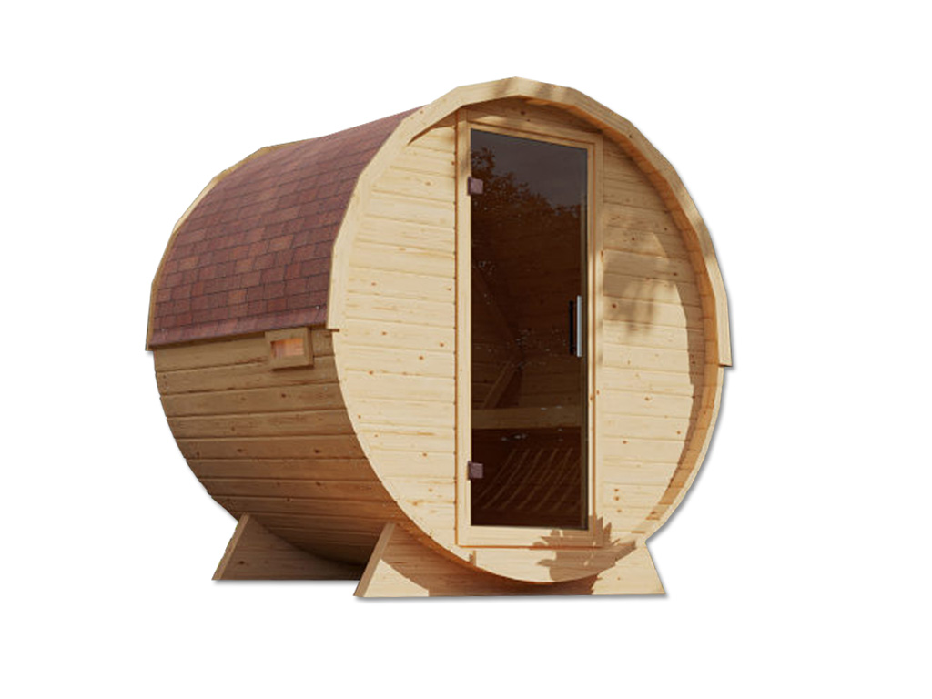 Fasssaunen ziehen mit ihrer außergewöhnlichen Optik nicht nur alle Blicke auf sich, sondern bieten auch hervorragende technische Eigenschaften. Die runde Form ermöglicht eine optimale Luft- und Wärmezirkulation sowie ein besonders schnelles, sparsames Erhitzen ohne unangenehmen Hitzestau in den Ecken und unter der Decke. Dank ihrer kompakten Form und geringen Grundfläche sind Fasssaunen besonders gut für kleine Gärten geeignet. In dieser Sauna können 1-2 Personen gleichzeitig saunieren.