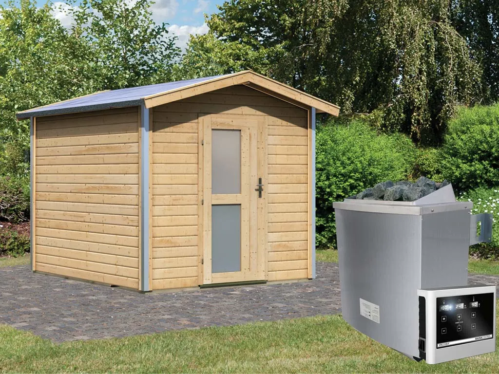 KARIBU Saunahaus "Bosse 1" 38 mm inkl. 9 kW Saunaofen mit externer Steuerung Easy