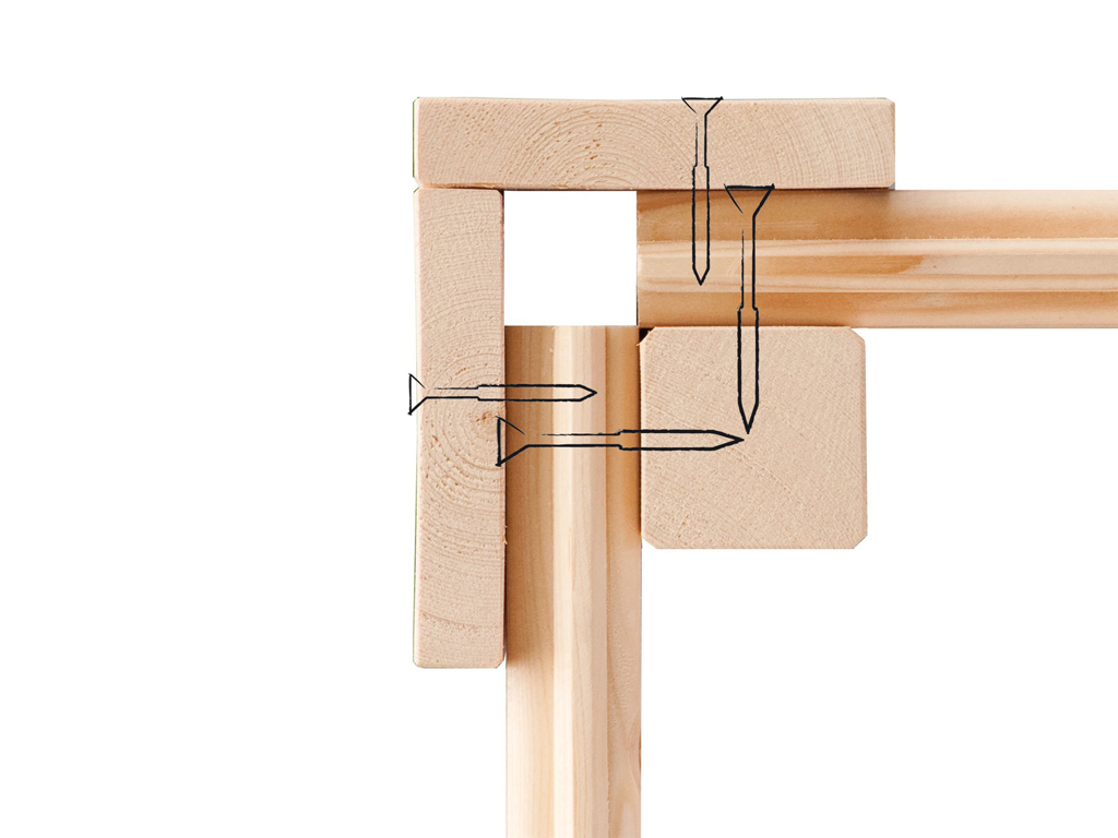 Die zwei extra langen Bankliegen und die Querliege aus stabilem Espenholz erhöhen den Komfort in diesem Saunahaus. Zusätzlich ist ein Ofenschutzgitter aus massivem Fichtenholz und ein Massivholzboden im Lieferumfang enthalten. - Schiebetür