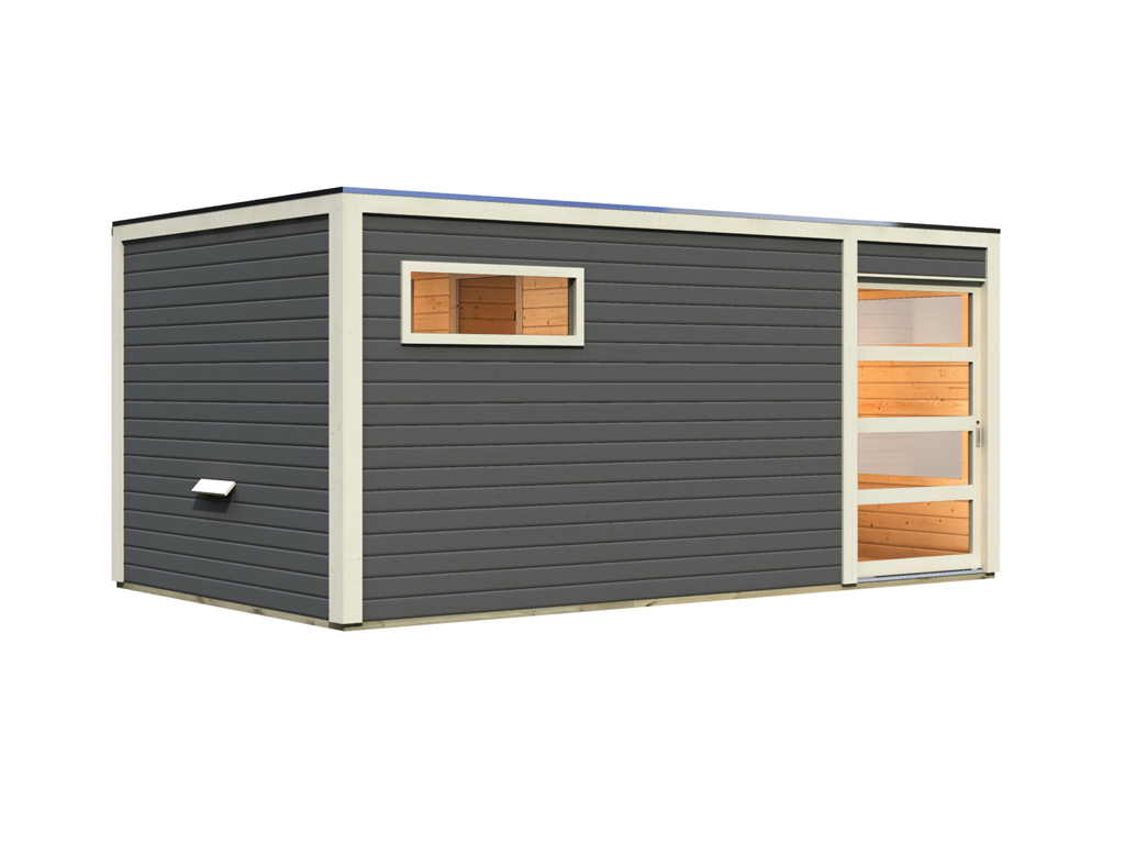 Saunahaus Hygge Grau mit Schiebetür & Vorraum