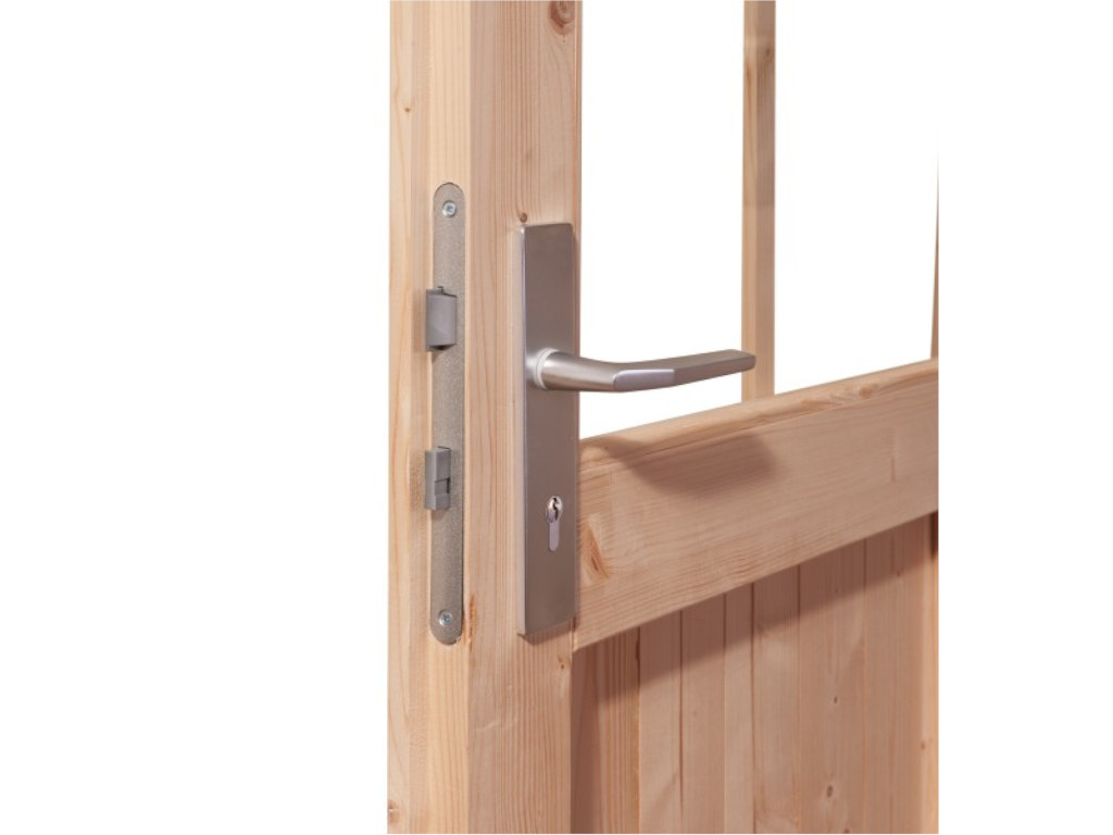 Die Tür aus klarem und isoliertem Glas ist links anschlagbar und wird mit einem Zylinderschloss inklusive 3 Schlüsseln geliefert. Die drei Lichtausschnitte sorgen für ausreichend Licht in Ihrer Sauna. - Inkl. 9 kW Saunaofen mit externer Steuerung "Easy"
