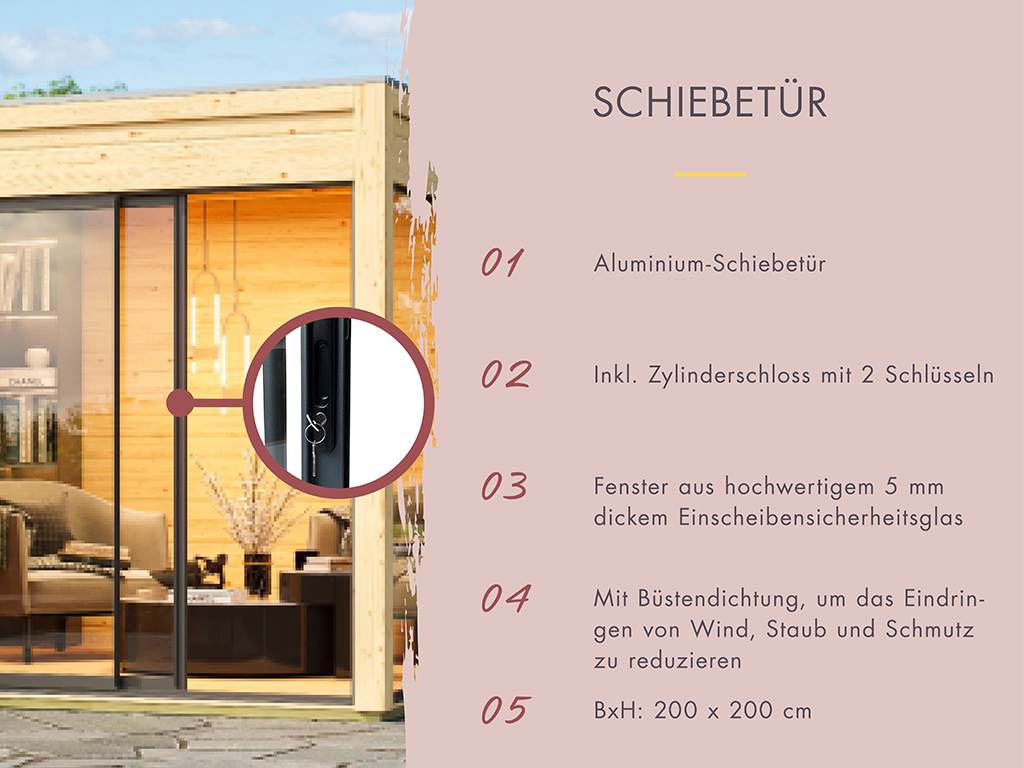 | Nebentür - Art und Ausstattung: | Schiebetür |