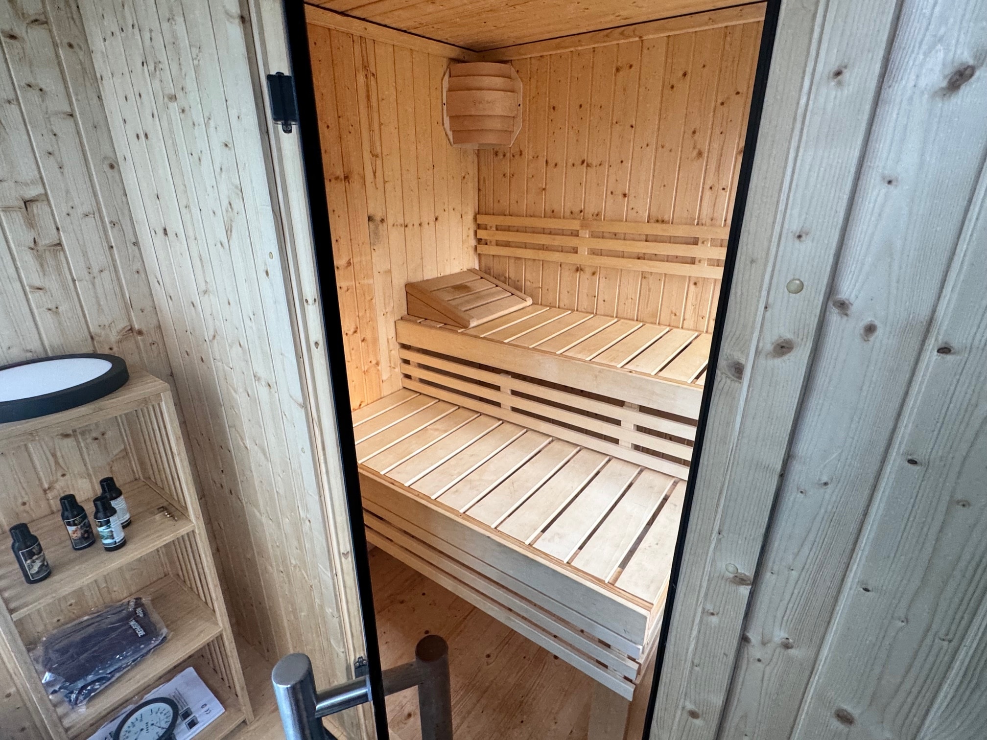 - Dachkranz mit integrierten LED-Lampen: Zaubert harmonisches Licht um deine Sauna.
