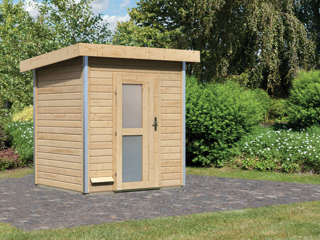 Saunahaus Roger mit moderner Tür naturbelassen ohne Ofen