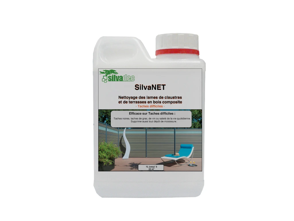 WPC-Dielen sind pflegeleicht, denn durch ihren Aufbau kann der Schmutz nicht in die tieferen Schichten eindringen. Dennoch sollten sie regelmäßig gereinigt werden, um ihre Schönheit zu erhalten. Bei Silvanet handelt es sich um ein hochwertiges, effektives Reinigungsprodukt für die WPC-Terrassendielen von Silvadec. Es entfernt Plaque sowie hartnäckigen Schmutz und ist speziell auf pflanzliche und umweltbedingte Verunreinigungen ausgelegt. Eine Packung enthält 1 Liter Reiniger und reicht aus, um eine Terrassenfläche von ca. 20 bis 30 m² zu reinigen. Mit einem Schwamm oder einer Bürste auftragen und anschließend gründlich mit klarem Wasser abspülen.