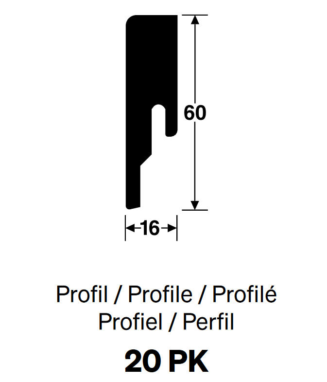 Sockelleistenprofil (B x H): | 16 x 60 mm |