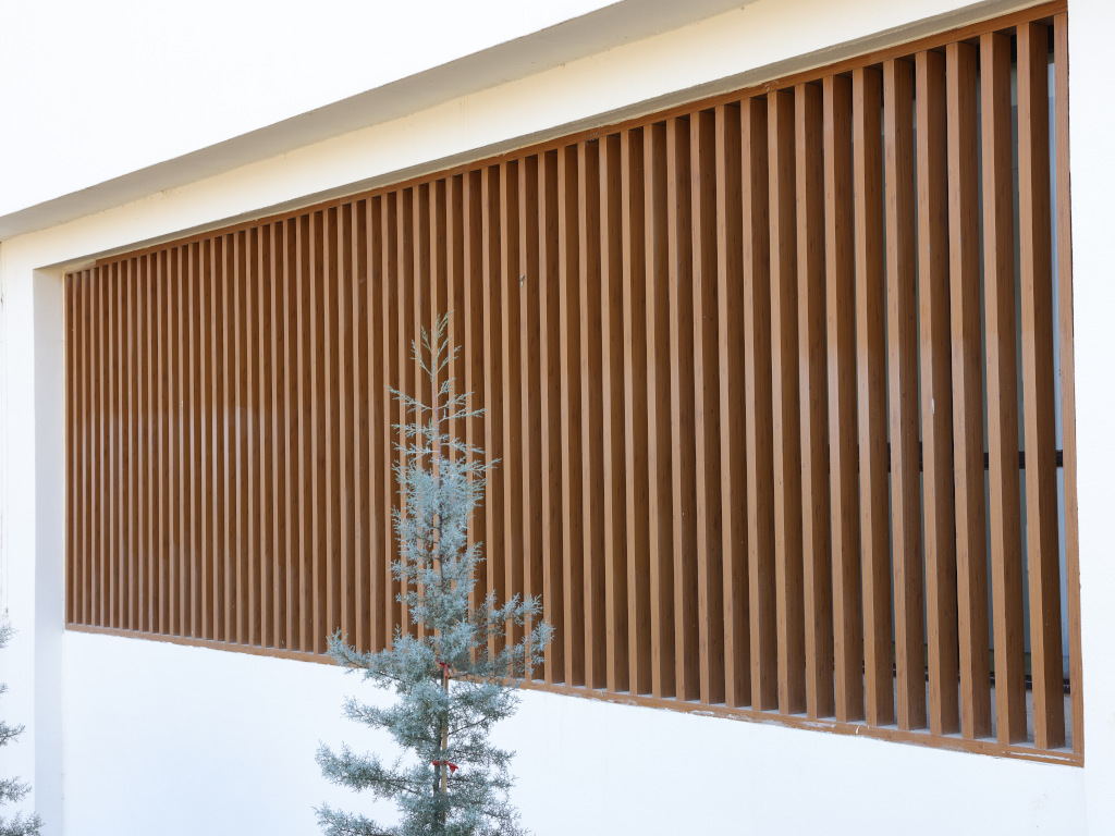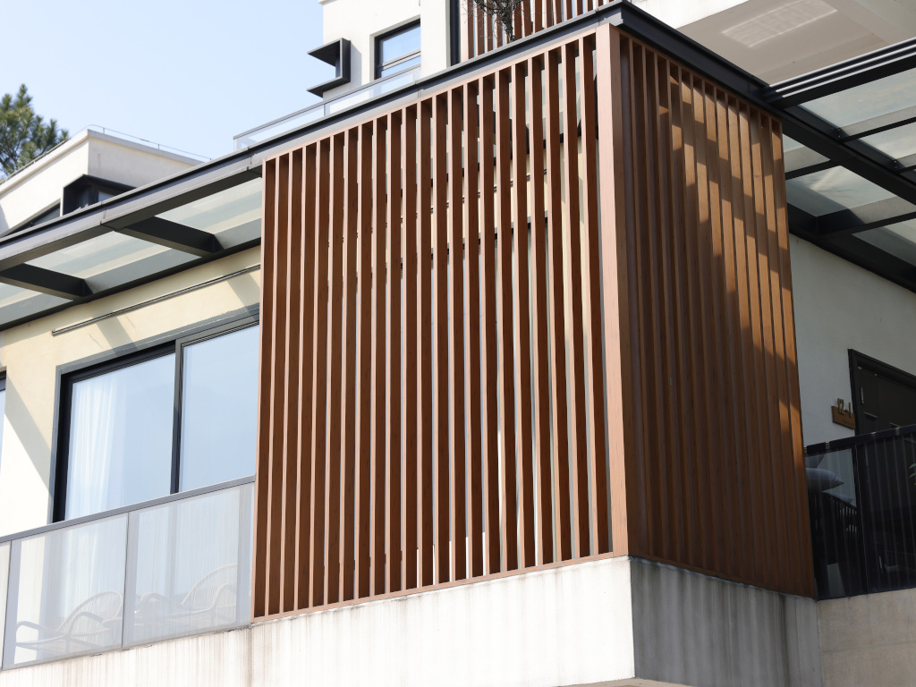 Sonnenbrecher / Fassadenprofil WPC Sonnenschutz Co extrudiert Teak