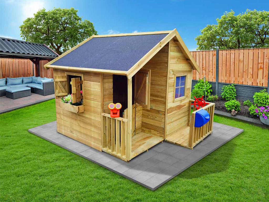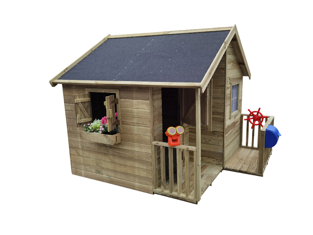 Das Spielhaus lässt sich ganz nach den Wünschen deiner Kinder um vielfältiges Zubehör, wie z.B. einen Briefkasten, ein Spieltelefon oder ein Lenkrad erweitern. In jedem Fall empfehlen wir dir die Dacheindeckung mit funktionalen und dekorativen Dachschindeln. Bitte beachte hierzu unser großes Zubehör-Sortiment.