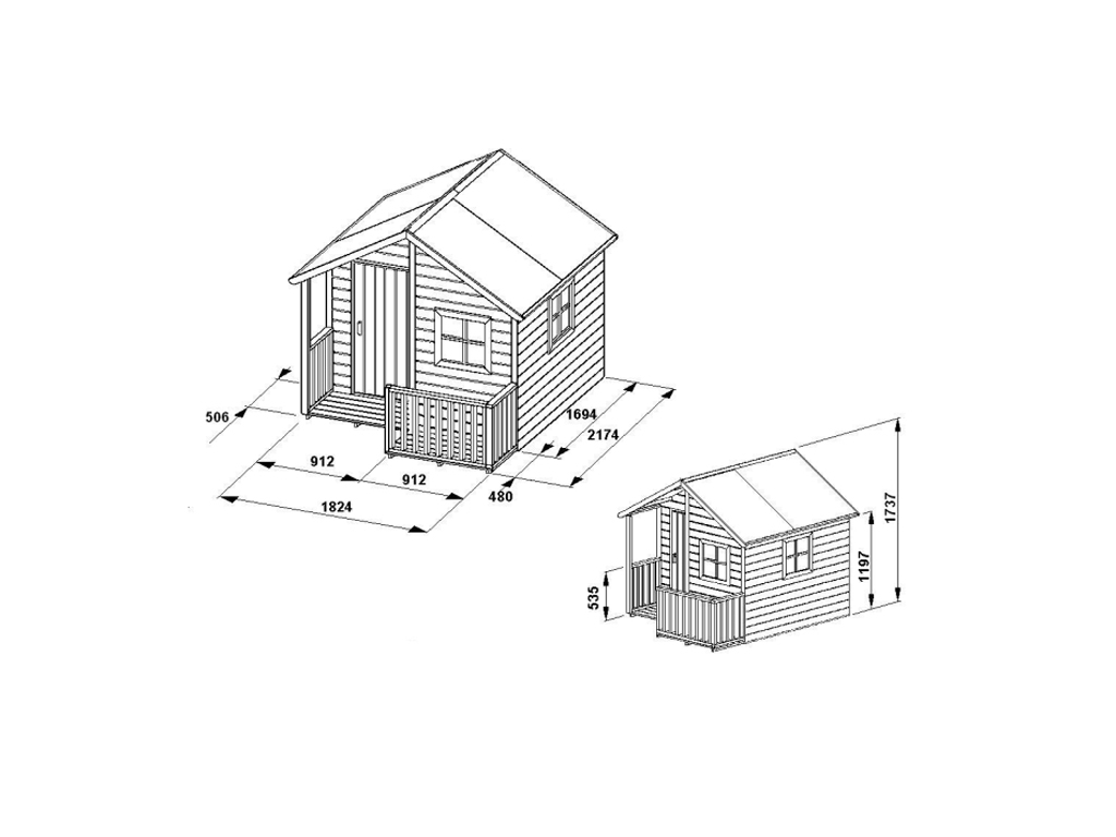 Lieferumfang: Spielhaus Berlin, Fußboden, 2x Blumenkasten, detaillierte Montageanleitung