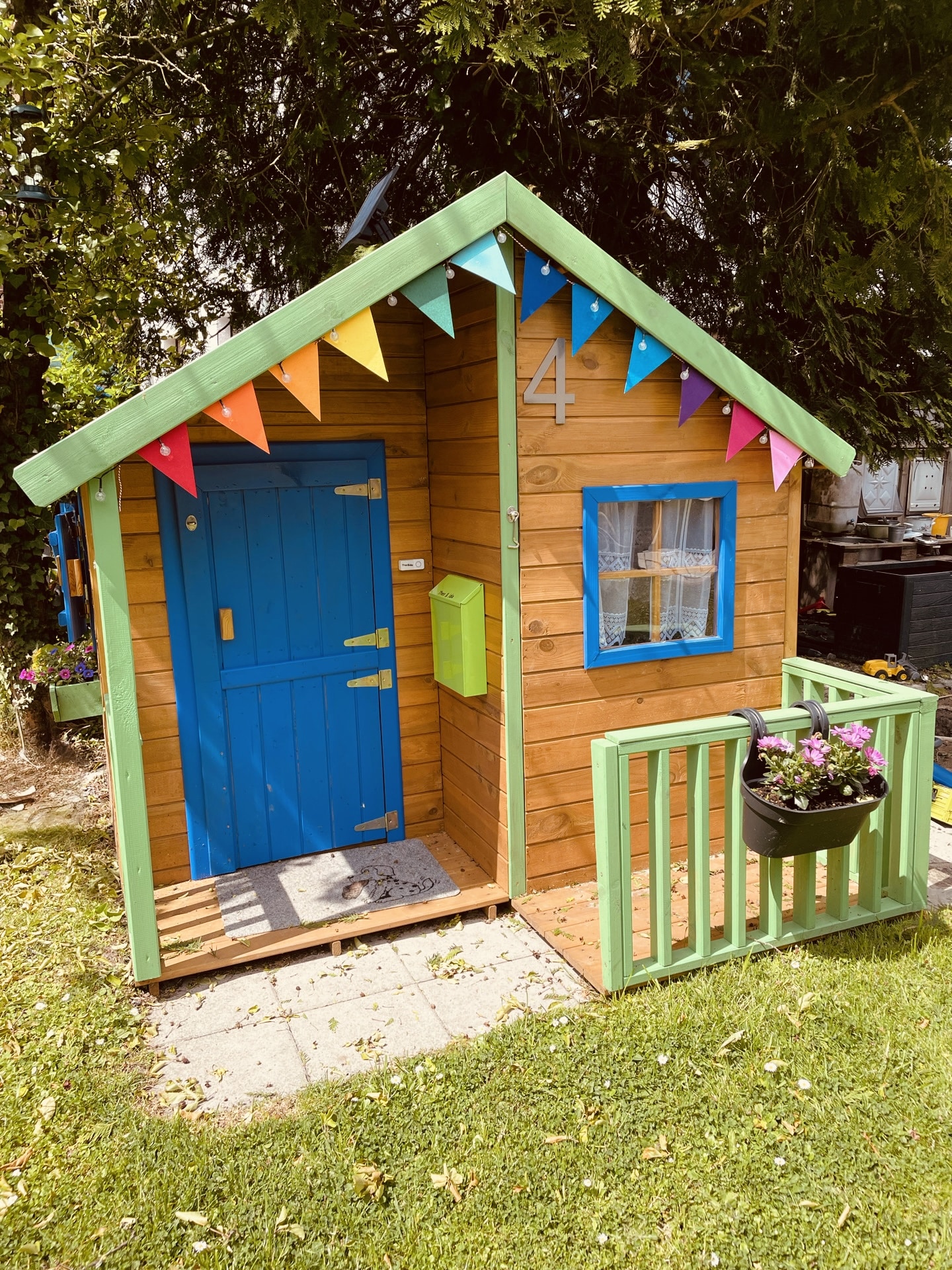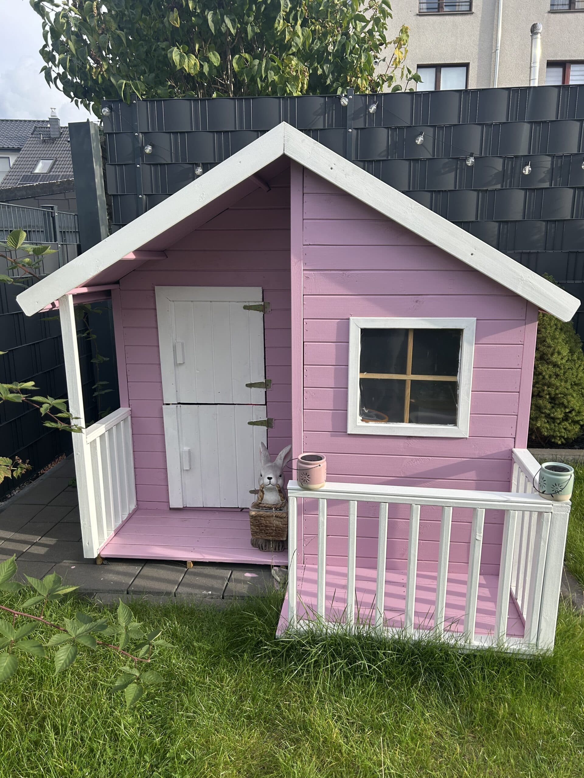 Die Qualität des Holzes ist zwar nicht das beste, also eher dünne Bretter. Aber mein Mann hat es an der einen und anderen Seite von innen mit Holzplatten verstärkt. Schön streichen und Deko, nun sind wir zufrieden und die beiden Kinder auch.