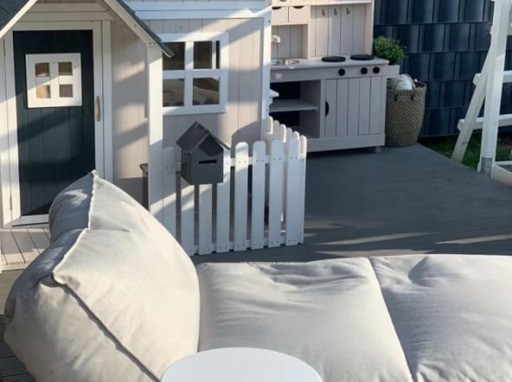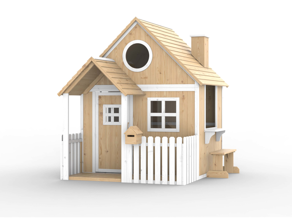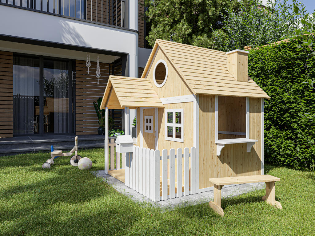Dieses Spielhaus bietet Ihren Kindern einzigartige Erlebnisse in den eigenen vier Wänden. Das Spielhaus wird inklusive Veranda mit Briefkasten und Verkaufstheke inklusive Sitzbank geliefert.