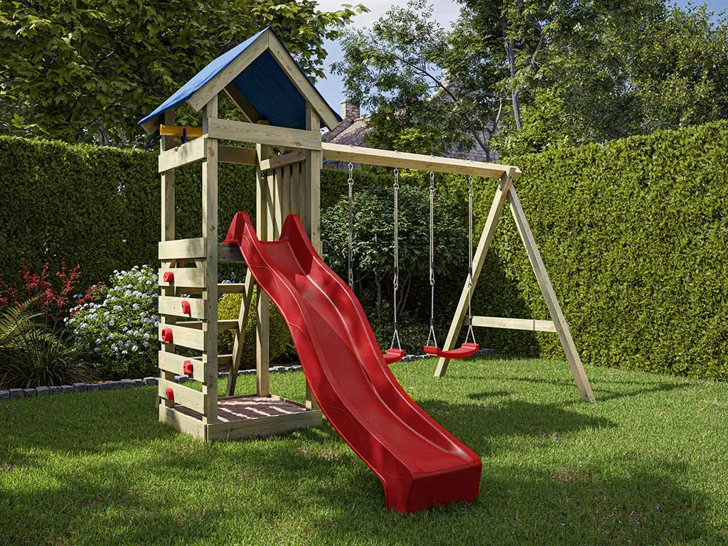 Dieser Spielturm ist aus Holz gefertigt. Der Naturstoff ist das perfekte Material für Kinderspielgeräte – strapazierfähig und beständig. Die Spielturmpfosten sind 7 x 7 cm stark und sorgen damit für eine besonders stabile Grundkonstruktion.