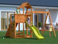 Lieferumfang: | Spielturm Speedy KDI, Planendach, Podesterweiterung, Doppelschaukel, 2x Schaukelsitz od. 1x Nesteschaukel (je nach Auswahl), 4 Schaukelhaken, 2 Handgriffe, Sandkasten, Leiter, Kletterwand, Klettersteine, 1x Teleskop, 1x Rutsche |