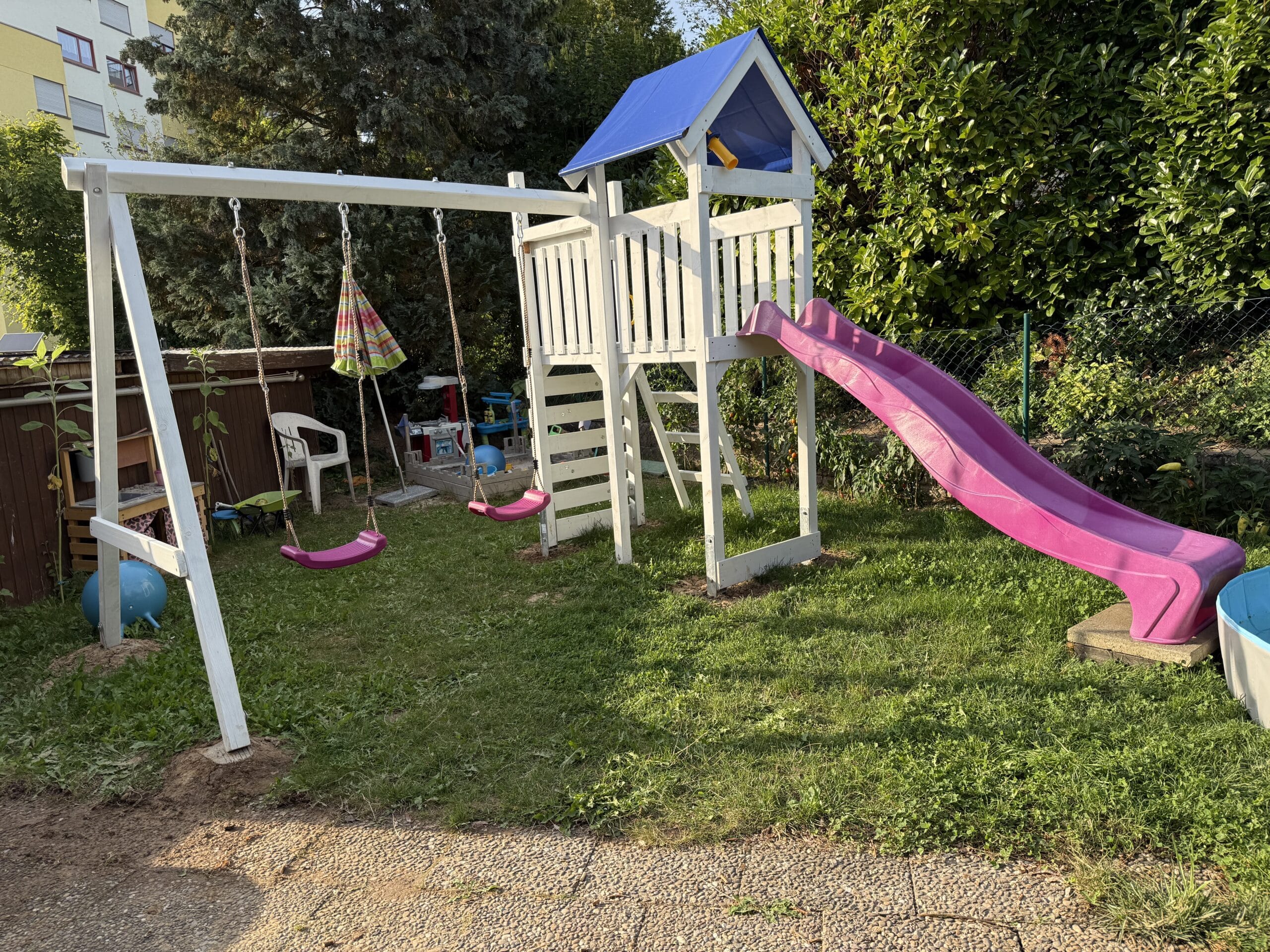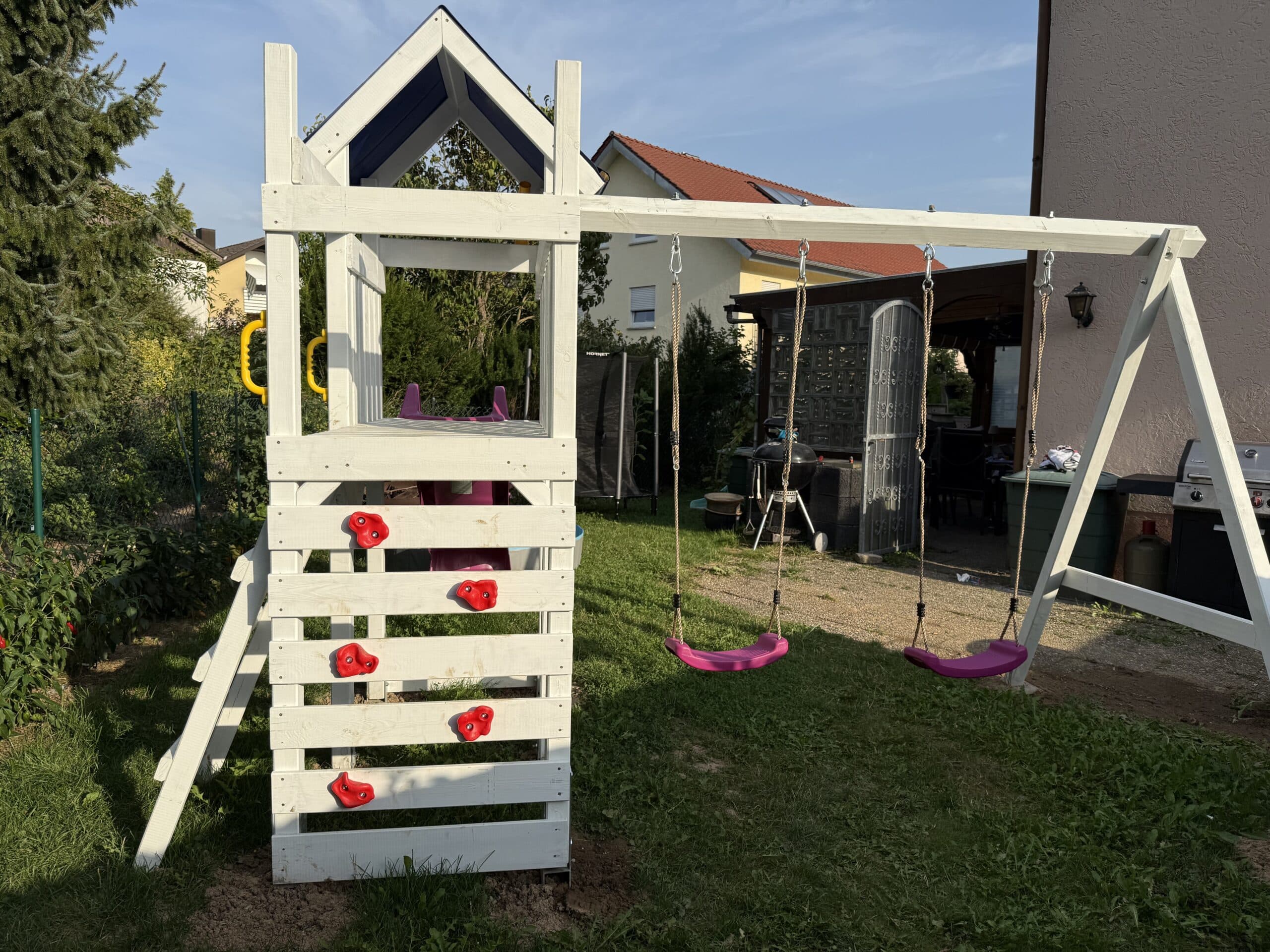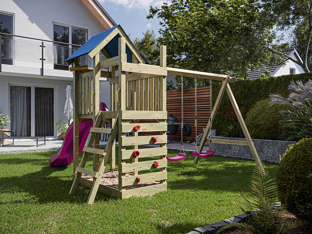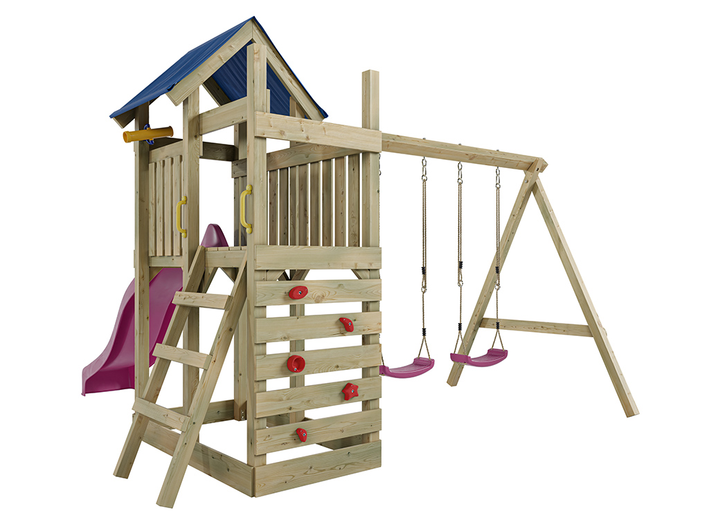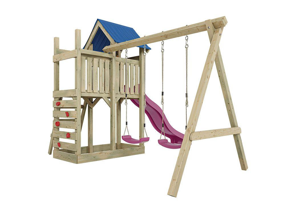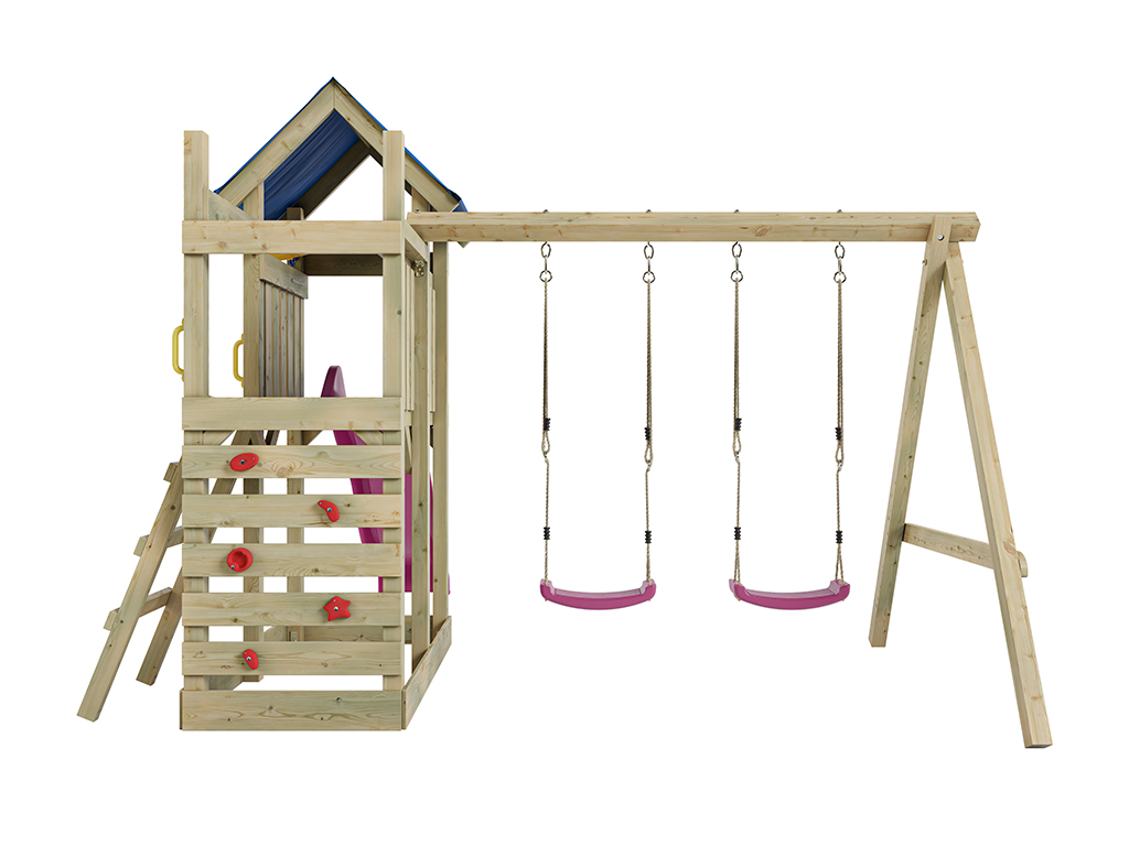 - Inklusive einer Doppelschaukel in Pink mit 9 x 9 cm starkem Schaukelbalken.