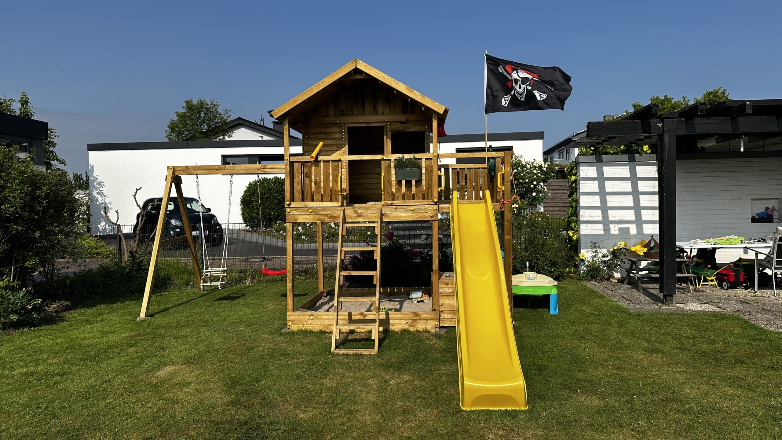 Man kann problemlos noch eine Rutsche dazukaufen und anbringen und z.B. die Schaukel, das Kletterbrett und/oder die Leiter an einigen anderen Stellen positionieren. Das sollte man sich natürlich vor Baubeginn überlegen.