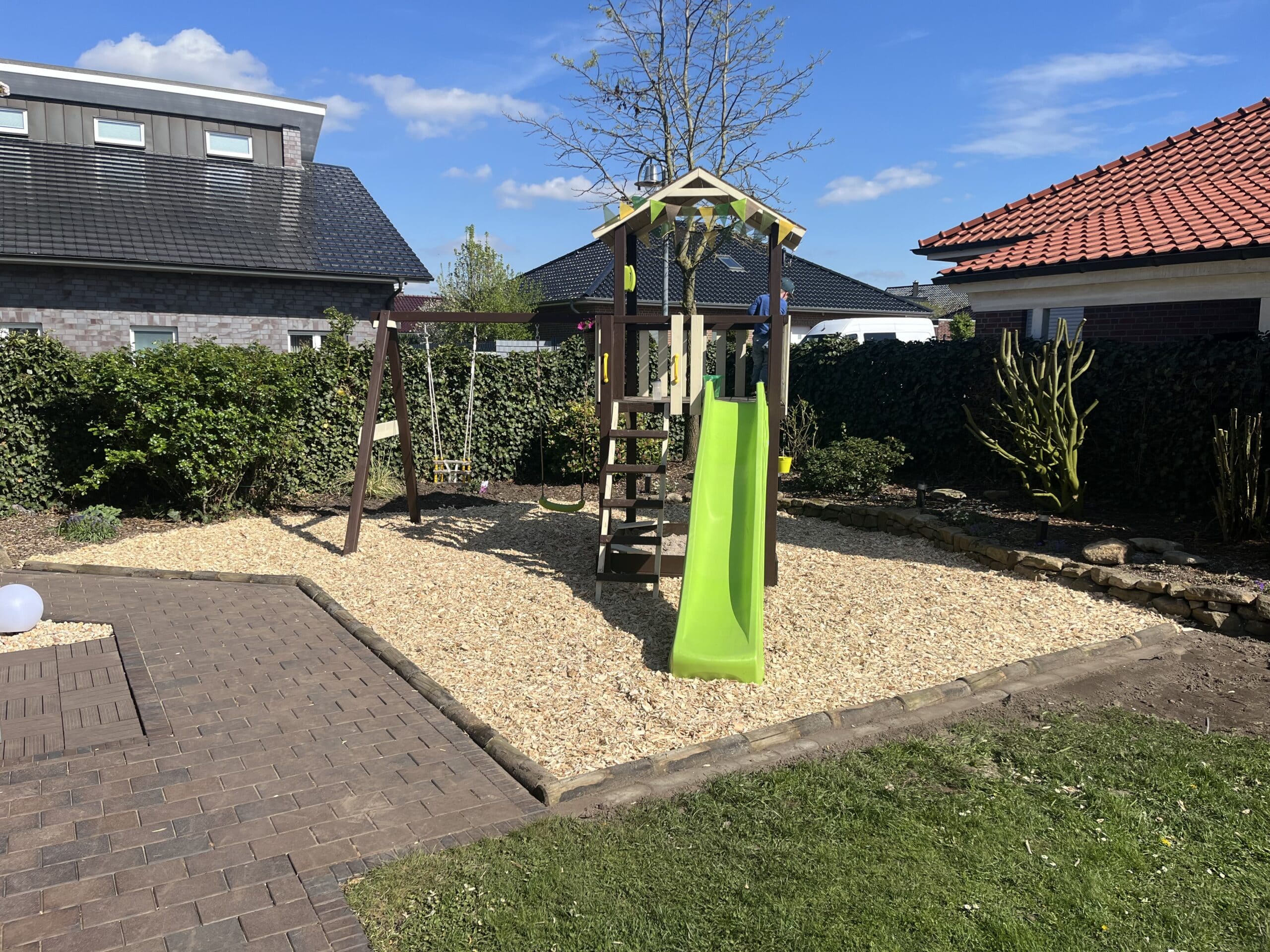 Spieltürme/Stelzenhäuser mit einer Spielhöhe von über 60 cm müssen auf einer weichen Unterlage wie Gras oder Holzspänen aufgestellt werden.