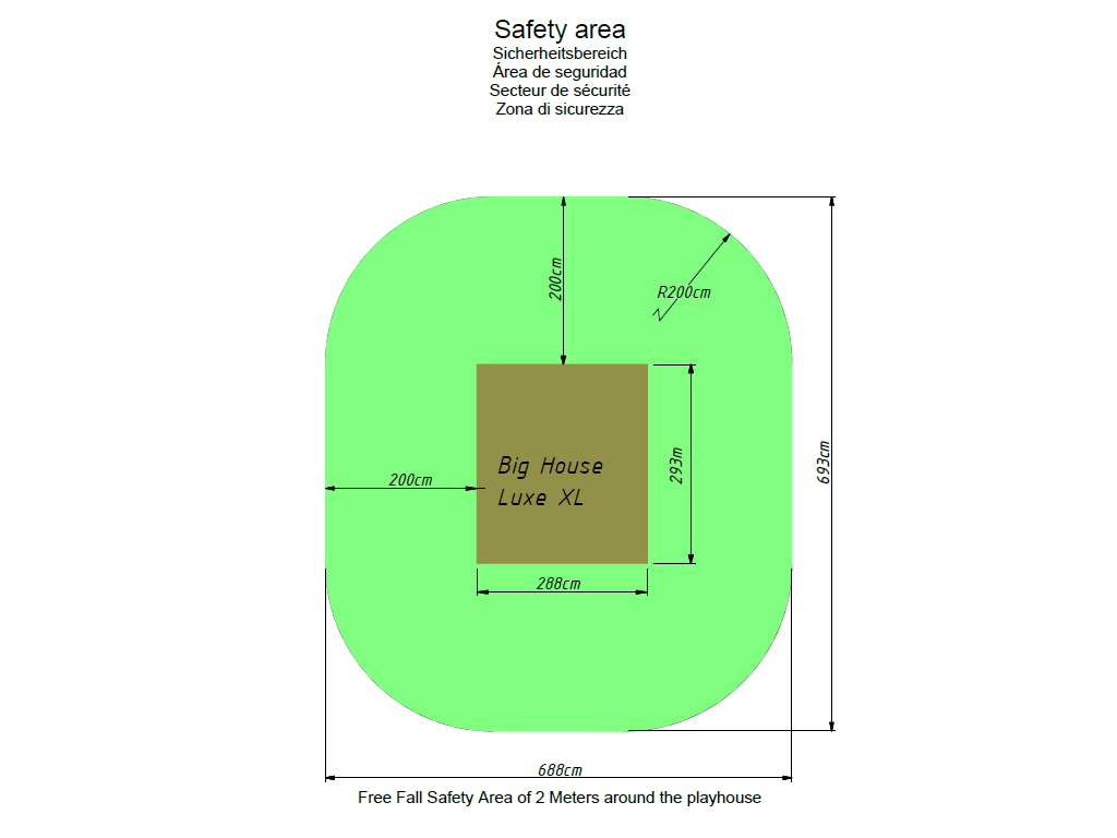 Spieltürme/Stelzenhäuser mit einer Spielhöhe von über 60 cm müssen auf einer weichen Unterlage wie Gras oder Holzspänen aufgestellt werden.