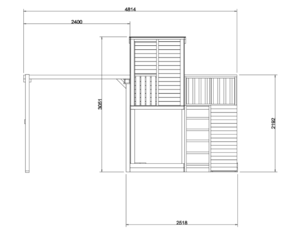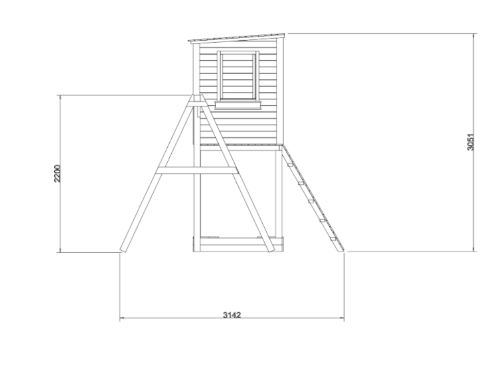 Die Grundkonstruktion ist in regelmäßigen Abständen auf etwaige Beschädigung und Fäulnisbefall zu kontrollieren. Um die Stabilität zu gewährleisten, müssen die Pfosten im Boden verankert werden. Die Schraubverbindungen sind in regelmäßigen Abständen (ca. 4 Wochen, je nach Benutzungshäufigkeit und Alter des Spielgerätes) auf festen Sitz und Stabilität zu überprüfen. Die angegebenen Maße können geringfügig abweichen.
