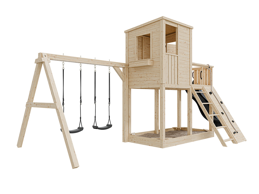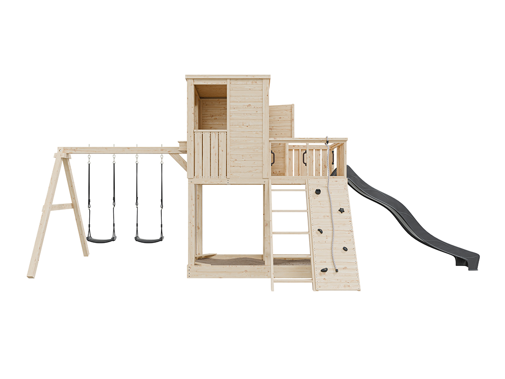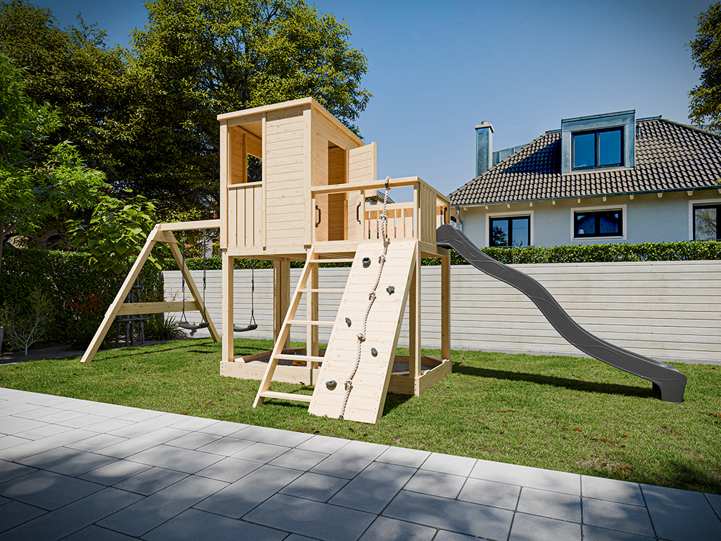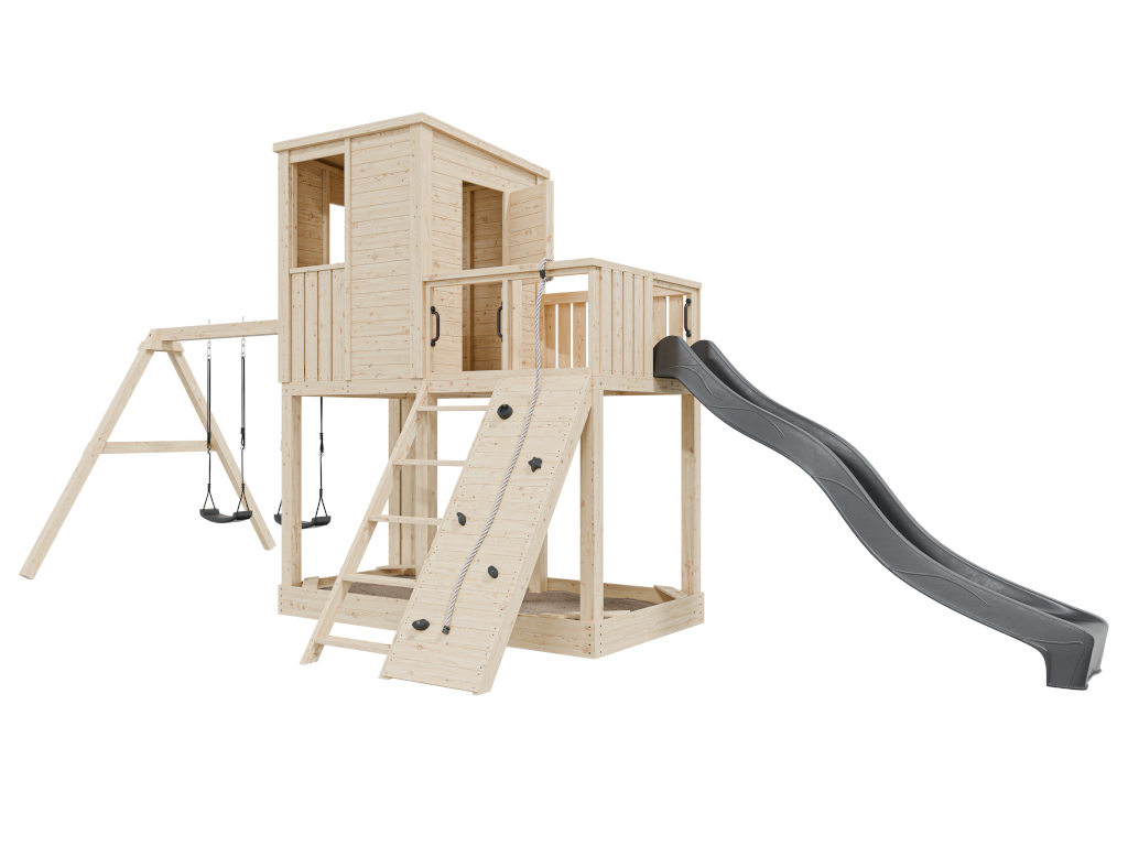 Stelzenhaus Carl naturbelassen mit Doppelschaukel inkl. Rutsche anthrazit