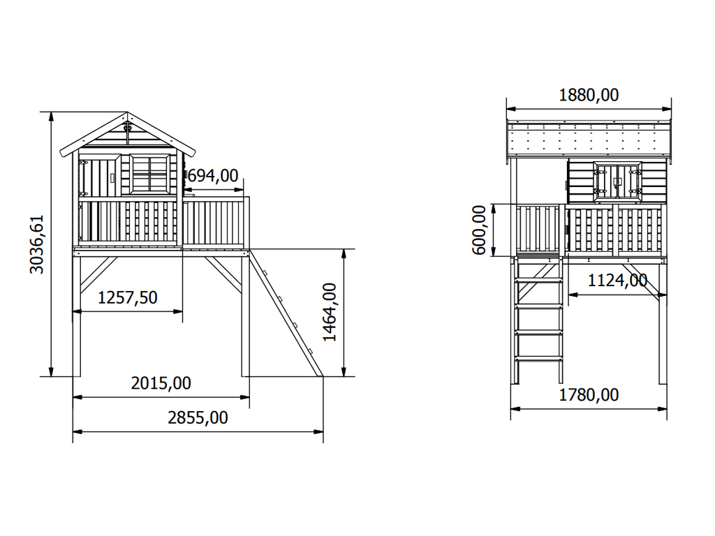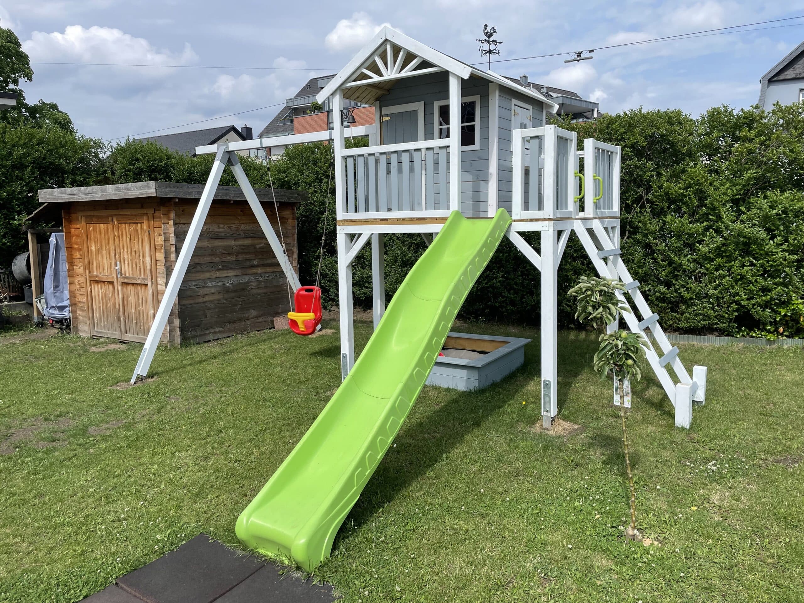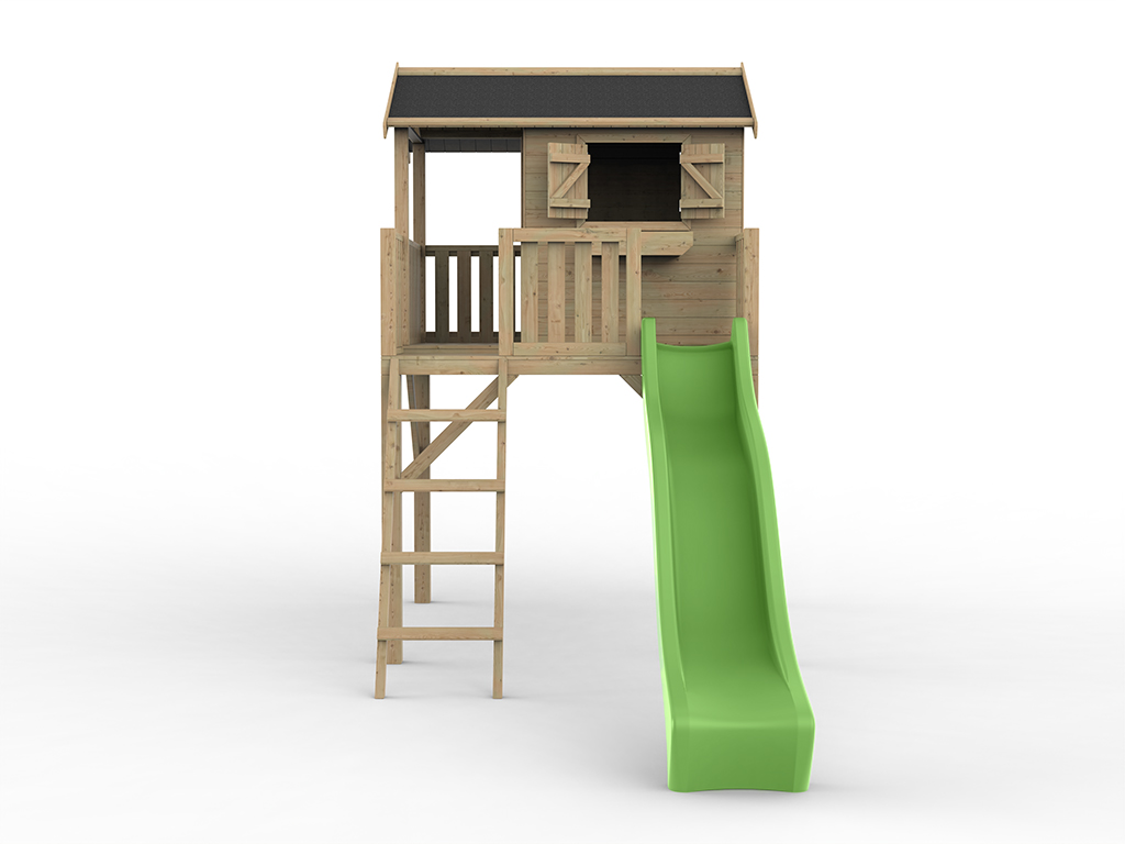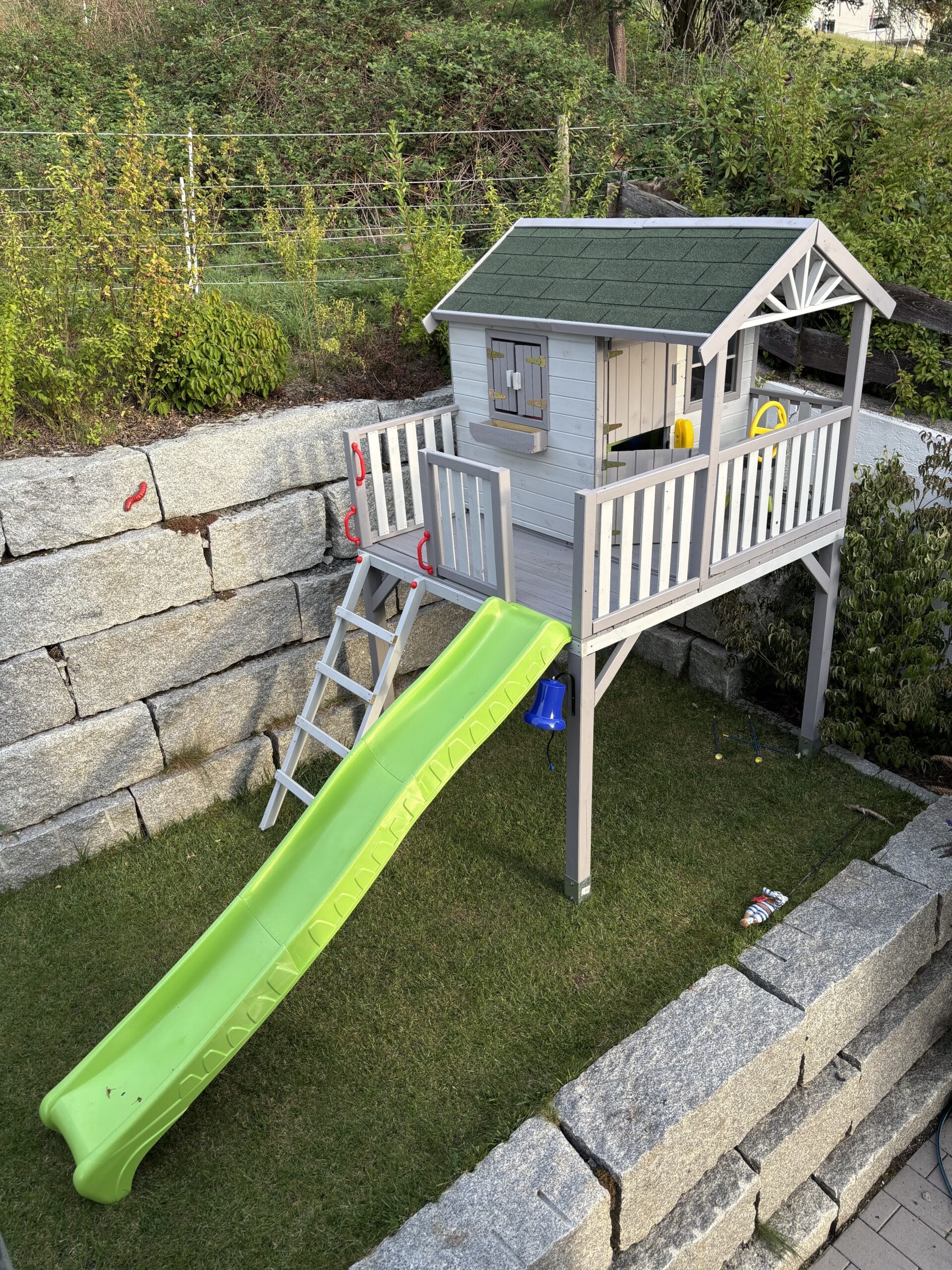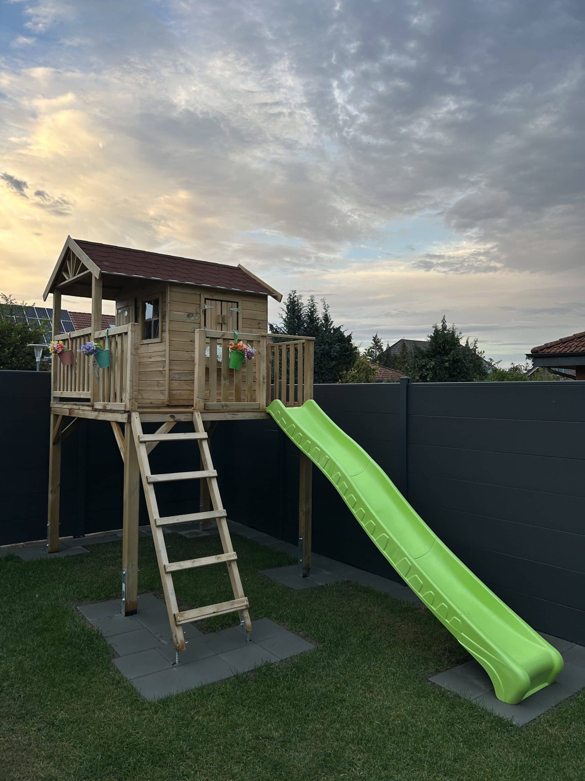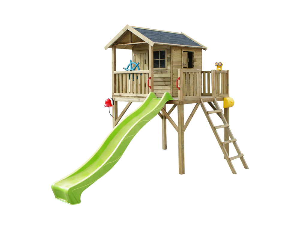 | Lieferumfang: | Stelzenhaus Funny XXL, Blumenkasten, Fensterläden, Veranda, Balkon, detaillierte Montageanleitung, Rutsche grün |