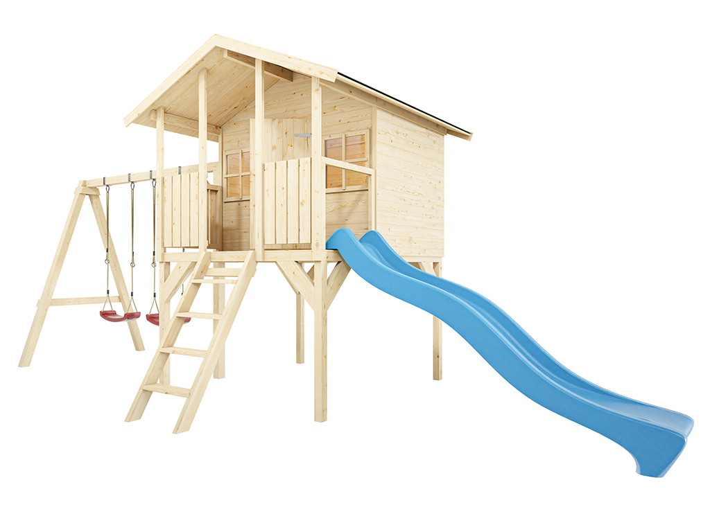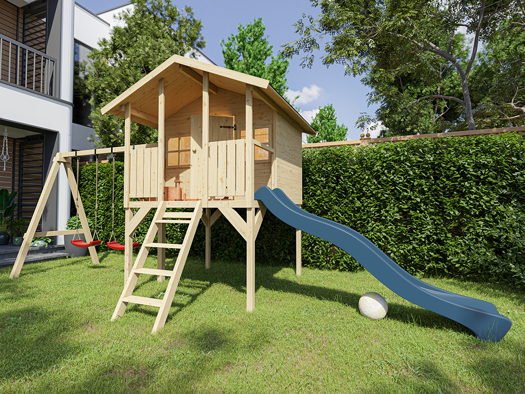 Stelzenhaus Toby inkl. Doppelschaukel und Rutsche blau