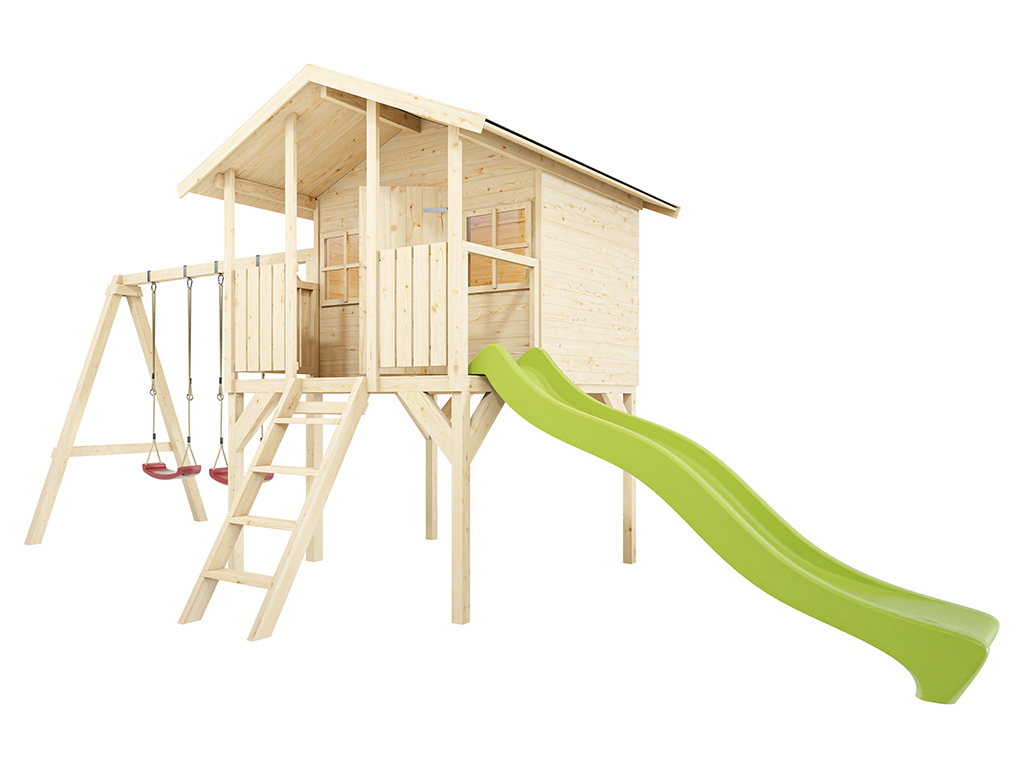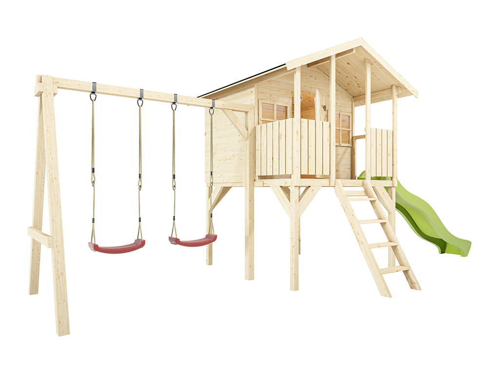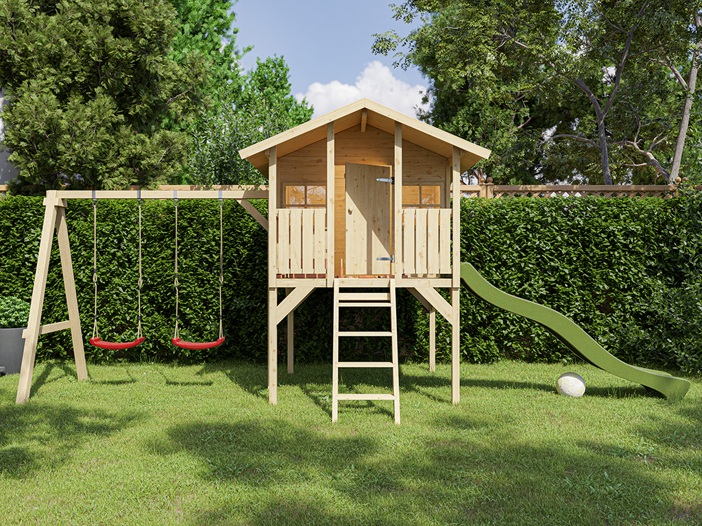 Stelzenhaus Toby inkl. Doppelschaukel und Rutsche grün