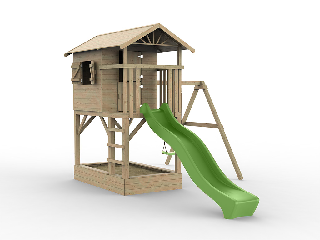 Stelzenhaus Tree Hut mit Sandkasten KDI inkl. Einzelschaukel und Rutsche grün