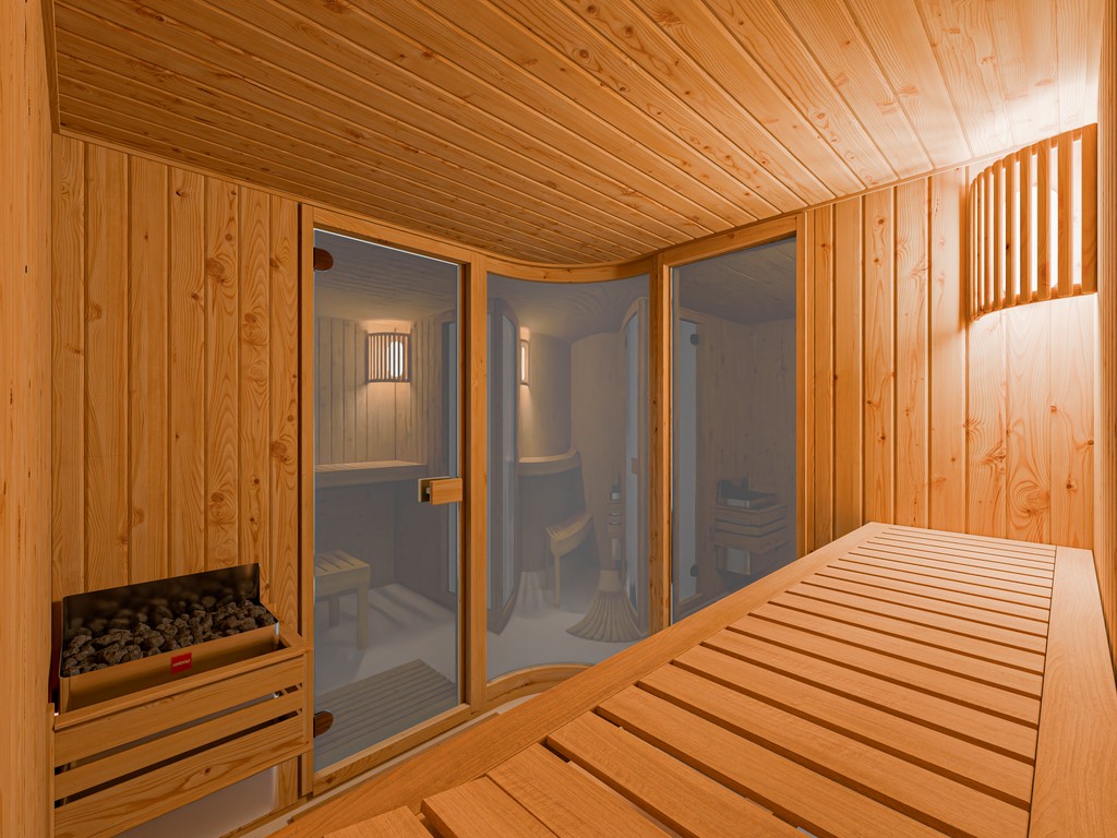 - Eckeinstieg: Saunen dieser Form machen sich besonders gut in kleinen Räumen, da sie platzsparend sind, aber trotzdem viel Freiheit zum Saunieren bieten. Kompakt und in nahezu jeden Raum integrierbar!