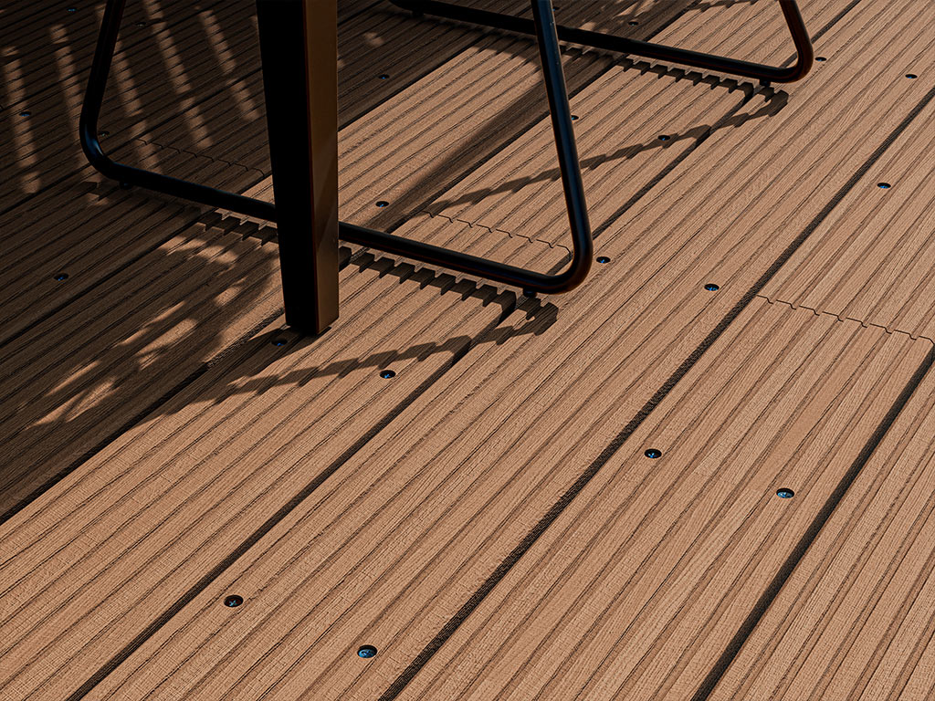 Unter Endlosverlegung versteht man im Terrassenbau die nahtlose Verbindung von Terrassendielen zu einer scheinbar durchgehenden Fläche. Ermöglicht wird diese Optik durch die spezielle Nut- und Feder-Technik an den Stirnseiten der Dielen. Die Verbindung sorgt für Stabilität und perfekte Passgenauigkeit. Durch die stirnseitige Nut- und Federverbindung wirken auch kürzere Dielen optisch länger. Das Verlegebild wirkt harmonischer und einheitlicher, ohne störende Unterbrechungen. Zudem entfällt das exakte Ausrichten der Fugen.