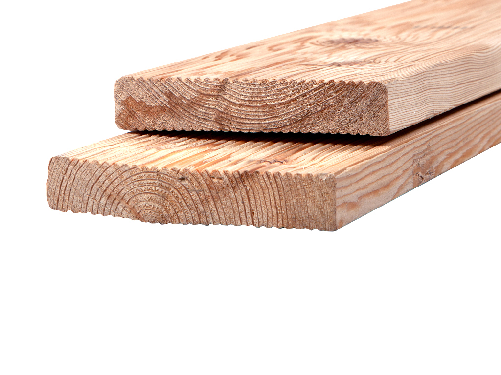 Diese 25 mm starken Terrassendielen werden aus Lärche hergestellt. Das Holz der Lärche ist mit einer mäßigen Dauerhaftigkeitsklasse 3 eines der härtesten unter den heimischen Nadelhölzern. Das helle Holz in gelbem bis orangebraunem Farbton zeichnet sich durch eine ausgeprägte Maserung, deutliche Jahresringe und geradfaserige Struktur aus. Der hohe Harzanteil schützt eigenständig vor Pilz- und Insektenbefall. Lärchenholz lässt sich manuell und maschinell leicht bearbeiten. Zum Nageln und Schrauben wird das Vorbohren empfohlen.