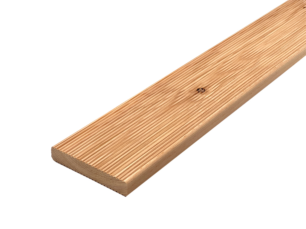 Diese 25 mm starken Terrassendielen werden aus Lärche hergestellt. Das Holz der Lärche ist mit einer mäßigen Dauerhaftigkeitsklasse 3 eines der härtesten unter den heimischen Nadelhölzern. Das helle Holz in gelbem bis orangebraunem Farbton zeichnet sich durch eine ausgeprägte Maserung, deutliche Jahresringe und geradfaserige Struktur aus. Der hohe Harzanteil schützt eigenständig vor Pilz- und Insektenbefall. Lärchenholz lässt sich manuell und maschinell leicht bearbeiten. Zum Nageln und Schrauben wird das Vorbohren empfohlen.